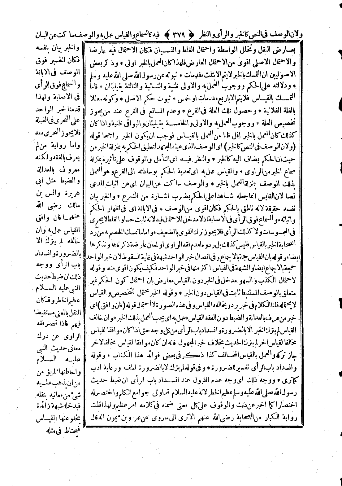 وَلِأَنَّ الْوَصْفَ فِي النَّصِّ كَالْخَبَرِ، وَالرَّأْيُ وَالنَّظَرُ فِيهِ كَالسَّمَاعِ، وَالْقِيَاسُ عَمَلٌ بِهِ وَالْوَصْفُ سَاكِتٌ عَنْ الْبَيَانِ وَالْخَبَرُ بَيَانُ نَفْسِهِ فَكَانَ الْخَبَرُ فَوْقَ الْوَصْفِ فِي الْإِبَانَةِ، وَالسَّمَاعُ فَوْقَ الرَّأْيِ فِي الْإِصَابَةِ.