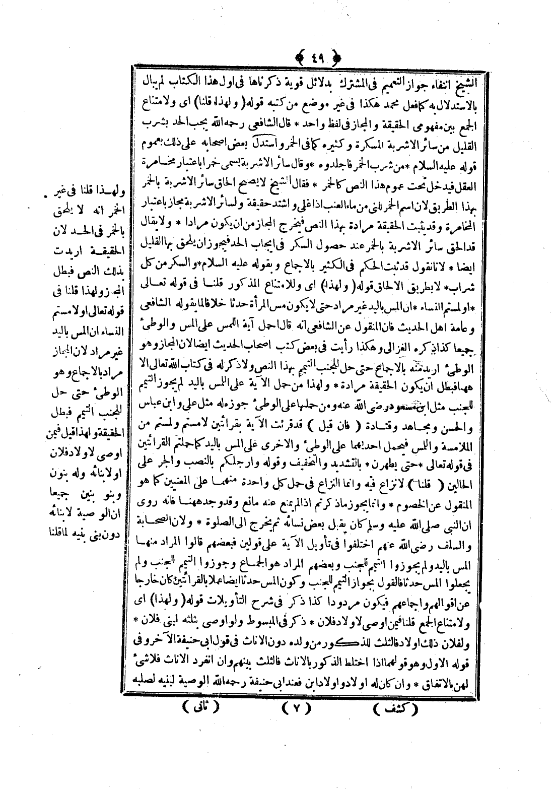 ـــــــــــــــــــــــــــــQالشَّيْخِ انْتِفَاءُ جَوَازِ التَّعْمِيمِ فِي الْمُشْتَرَكِ بِدَلَائِلَ قَوِيَّةٍ ذَكَرْنَاهَا فِي أَوَّلِ هَذَا الْكِتَابِ لَمْ يُبَالِ بِالِاسْتِدْلَالِ بِهِ كَمَا فَعَلَ مُحَمَّدٌ هَكَذَا فِي غَيْرِ مَوْضِعٍ مِنْ كُتُبِهِ.