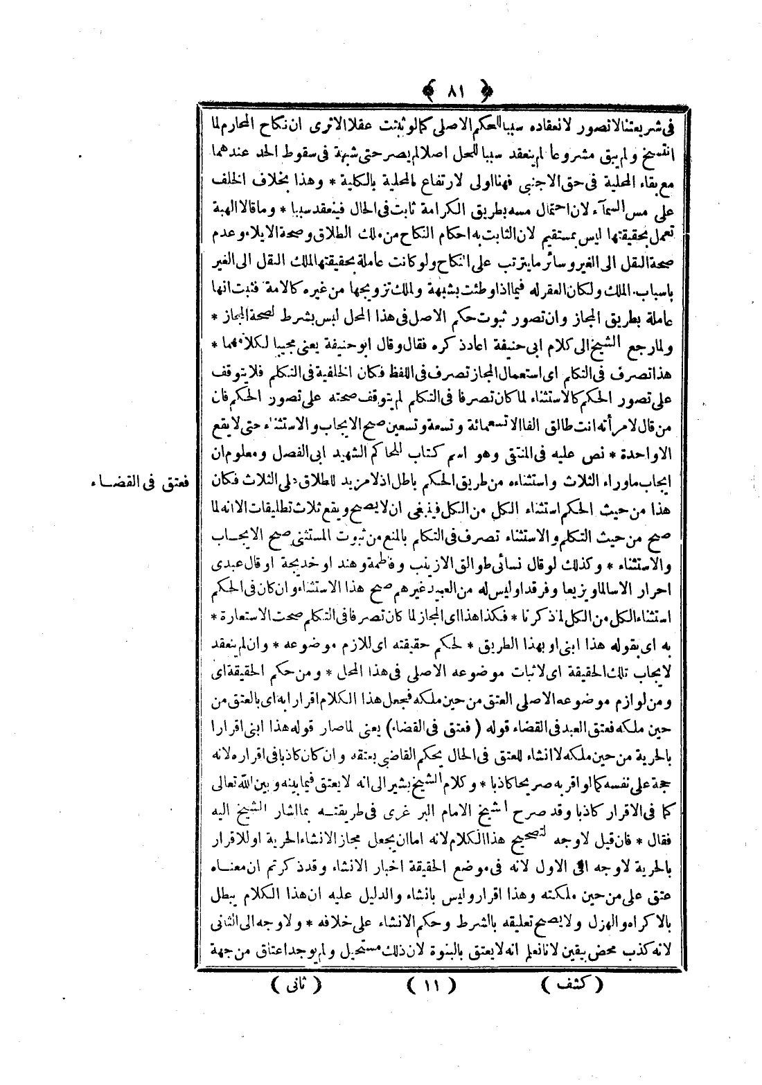 وَمَا قَالَا: الْهِبَةُ تَعْمَلُ بِحَقِيقَتِهَا لَيْسَ بِمُسْتَقِيمٍ؛ لِأَنَّ الثَّابِتَ بِهِ أَحْكَامُ النِّكَاحِ مِنْ مِلْكِ الطَّلَاقِ وَصِحَّةِ الْإِيلَاءِ وَعَدَمِ صِحَّةِ النَّقْلِ إلَى الْغَيْرِ وَسَائِرِ مَا يَتَرَتَّبُ عَلَى النِّكَاحِ وَلَوْ كَانَتْ عَامِلَةً بِحَقِيقَتِهَا لَمَلَكَ النَّقْلَ إلَى الْغَيْرِ بِأَسْبَابِ الْمِلْكِ وَلَكَانَ الْعُقْرُ لَهُ فِيمَا إذَا وُطِئَتْ بِشُبْهَةٍ وَلَمَلَكَ تَزْوِيجَهَا مِنْ غَيْرِهِ كَالْأَمَةِ فَثَبَتَ أَنَّهَا عَامِلَةٌ بِطَرِيقِ الْمَجَازِ وَإِنَّ تَصَوُّرَ ثُبُوتِ حُكْمِ الْأَصْلِ فِي هَذَا الْمَحَلِّ لَيْسَ بِشَرْطٍ لِصِحَّةِ الْمَجَازِ وَلَمَّا رَجَعَ الشَّيْخُ إلَى كَلَامِ أَبِي حَنِيفَةَ أَعَادَ ذِكْرَهُ فَقَالَ، وَقَالَ أَبُو حَنِيفَةَ يَعْنِي مُجِيبًا لِكَلَامِهِمَا هَذَا تَصَرُّفٌ فِي التَّكَلُّمِ أَيْ اسْتِعْمَالِ الْمَجَازِ تَصَرُّفٌ فِي اللَّفْظِ فَكَانَ الْخَلَفِيَّةُ فِي التَّكَلُّمِ فَلَا يُتَوَقَّفُ عَلَى تَصَوُّرِ الْحُكْمِ كَالِاسْتِثْنَاءِ لَمَّا كَانَ تَصَرُّفًا فِي التَّكَلُّمِ لَمْ يَتَوَقَّفْ صِحَّتُهُ عَلَى تَصَوُّرِ الْحُكْمِ فَإِنَّ مَنْ قَالَ لِامْرَأَتِهِ أَنْتِ طَالِقٌ أَلْفًا إلَّا تِسْعَمِائَةٍ وَتِسْعَةً وَتِسْعِينَ صَحَّ الْإِيجَابُ وَالِاسْتِثْنَاءُ حَتَّى لَا يَقَعَ إلَّا وَاحِدَةً نَصَّ عَلَيْهِ فِي الْمُنْتَقَى وَهُوَ اسْمُ كِتَابٍ لِلْحَاكِمِ الشَّهِيدِ أَبِي الْفَضْلِ وَمَعْلُومٌ أَنَّ إيجَابَ مَا وَرَاءِ الثَّلَاثِ وَاسْتِثْنَاءَهُ مِنْ طَرِيقِ الْحُكْمِ بَاطِلٌ إذْ لَا مُزِيدَ لِلطَّلَاقِ عَلَى الثَّلَاثِ فَكَانَ هَذَا مِنْ حَيْثُ الْحُكْمُ اسْتِثْنَاءَ الْكُلِّ مِنْ الْكُلِّ فَيَنْبَغِي أَنْ لَا يَصِحَّ وَيَقَعَ ثَلَاثَ تَطْلِيقَاتٍ إلَّا أَنَّهُ لَمَّا صَحَّ مِنْ حَيْثُ التَّكَلُّمُ وَالِاسْتِثْنَاءُ تَصَرُّفٌ فِي التَّكَلُّمِ بِالْمَنْعِ مِنْ ثُبُوتِ الْمُسْتَثْنَى صَحَّ الْإِيجَابُ وَالِاسْتِثْنَاءُ.