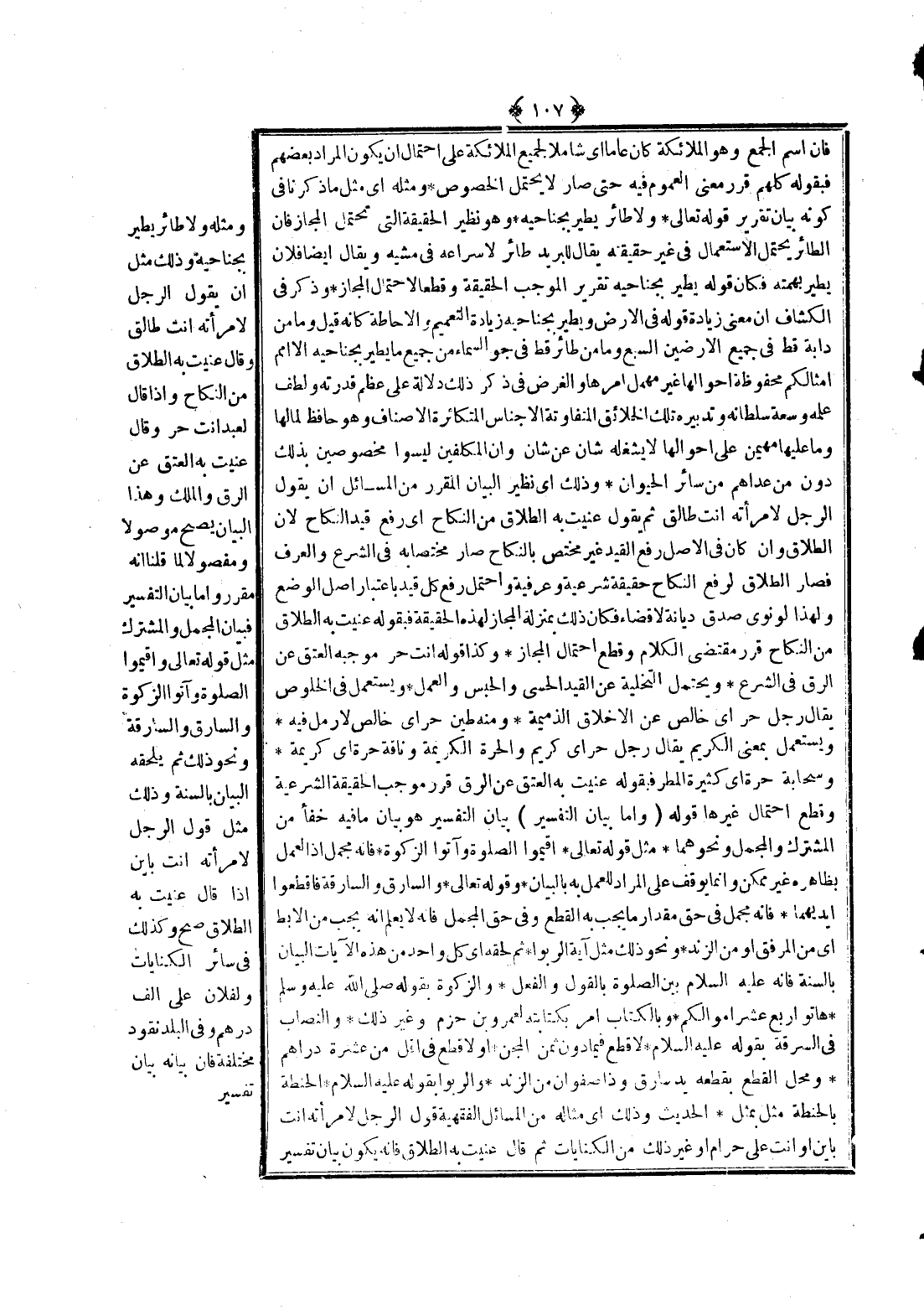 وَأَمَّا بَيَانُ التَّفْسِيرِ فَبَيَانُ الْمُجْمَلِ وَالْمُشْتَرَكِ مِثْلُ قَوْله تَعَالَى {وَأَقِيمُوا الصَّلاةَ وَآتُوا الزَّكَاةَ} [البقرة: 43] {وَالسَّارِقُ وَالسَّارِقَةُ} [المائدة: 38] وَنَحْوُ ذَلِكَ.