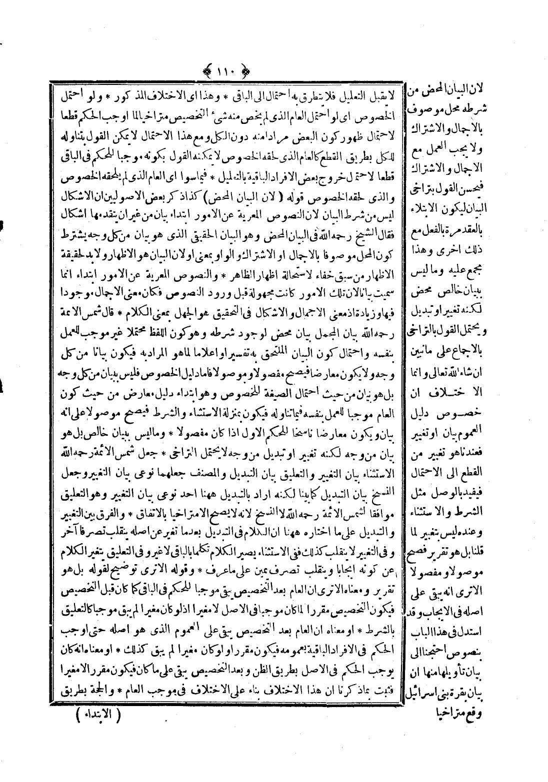 لِأَنَّ الْبَيَانَ الْمَحْضَ مِنْ شَرْطِهِ مَحَلٌّ مَوْصُوفٌ بِالْإِجْمَالِ وَالِاشْتِرَاكِ وَلَا يَجِبُ الْعَمَلُ مَعَ الْإِجْمَالِ وَالِاشْتِرَاكِ فَيَحْسُنُ الْقَوْلُ بِتَرَاخِي الْبَيَانِ لِيَكُونَ الِابْتِلَاءُ بِالْعَقْدِ مَرَّةً بِالْفِعْلِ مَعَ ذَلِكَ أُخْرَى وَهَذَا مُجْمَعٌ عَلَيْهِ وَمَا لَيْسَ بِبَيَانٍ خَالِصٍ مَحْضٍ لَكِنَّهُ تَغْيِيرٌ أَوْ تَبْدِيلٌ وَيَحْتَمِلُ الْقَوْلَ بِالتَّرَاخِي بِالْإِجْمَاعِ عَلَى مَا نُبَيِّنُ إنْ شَاءَ اللَّهُ تَعَالَى وَإِنَّمَا الِاخْتِلَافُ أَنَّ خُصُوصَ دَلِيلِ الْعُمُومِ بَيَانٌ أَوْ تَغْيِيرٌ، فَعِنْدَنَا هُوَ تَغْيِيرٌ مِنْ الْقَطْعِ إلَى الِاحْتِمَالِ فَيُفِيدُ بِالْوَصْلِ مِثْلَ الشَّرْطِ وَالِاسْتِثْنَاءِ وَعِنْدَهُ لَيْسَ بِتَغْيِيرٍ لِمَا قُلْنَا بَلْ هُوَ تَقْرِيرٌ فَصَحَّ مَوْصُولًا وَمَفْصُولًا أَلَا تَرَى أَنَّهُ يَبْقَى عَلَى أَصْلِهِ فِي الْإِيجَابِ، وَقَدْ اُسْتُدِلَّ فِي هَذَا الْبَابِ بِنُصُوصٍ احْتَجْنَا إلَى بَيَانِ تَأْوِيلِهَا مِنْهَا أَنَّ بَيَانَ بَقَرَةِ بَنِي إسْرَائِيلَ وَقَعَ مُتَرَاخِيًا