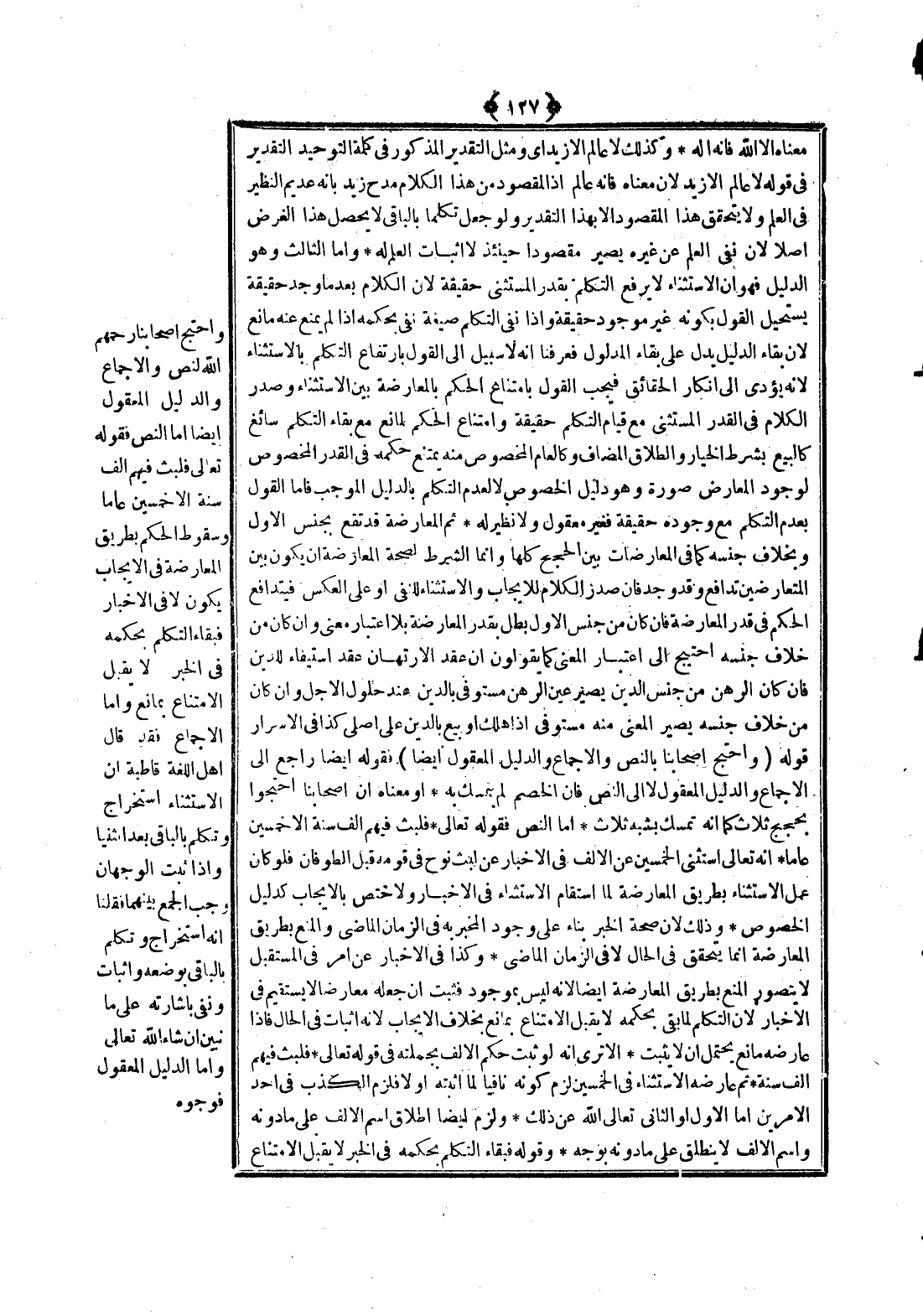 وَأَمَّا الْإِجْمَاعُ فَقَدْ قَالَ أَهْلُ اللُّغَةِ قَاطِبَةً إنَّ الِاسْتِثْنَاءَ اسْتِخْرَاجٌ وَتَكَلُّمٌ بِالْبَاقِي بَعْدَ الثُّنْيَا وَإِذَا ثَبَتَ الْوَجْهَانِ وَجَبَ الْجَمْعُ بَيْنَهُمَا فَقُلْنَا إنَّهُ اسْتِخْرَاجٌ وَتَكَلُّمٌ بِالْبَاقِي بِوَضْعِهِ وَإِثْبَاتٌ وَنَفْيٌ بِإِشَارَتِهِ عَلَى مَا نُبَيِّنُ إنْ شَاءَ اللَّهُ تَعَالَى، وَأَمَّا الدَّلِيلُ الْمَعْقُولُ فَوُجُوهٌ