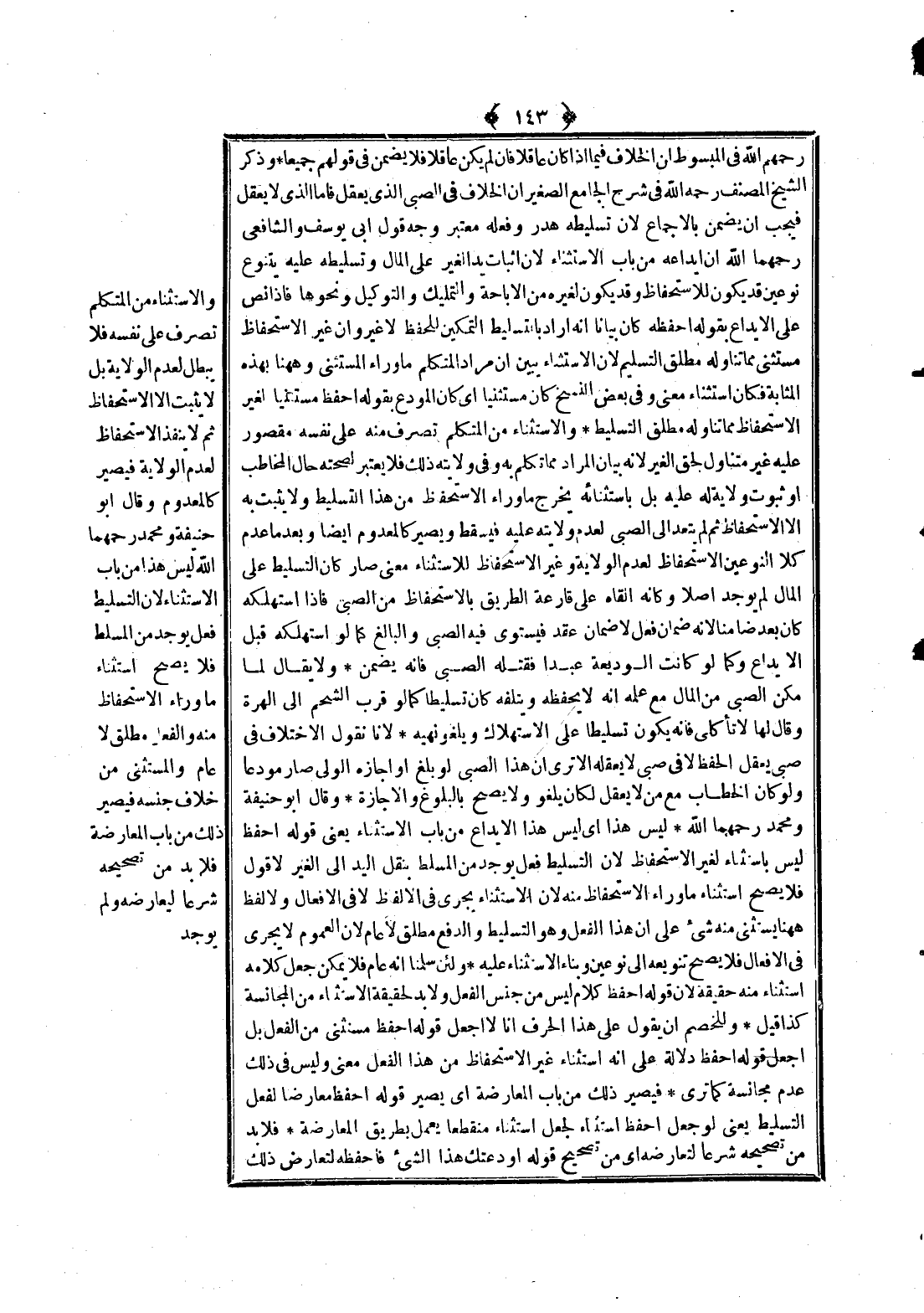 وَالِاسْتِثْنَاءُ مِنْ الْمُتَكَلِّمِ تَصَرُّفٌ عَلَى نَفْسِهِ فَلَا يَبْطُلُ لِعَدَمِ الْوِلَايَةِ بَلْ لَا يَثْبُتُ إلَّا الِاسْتِحْفَاظُ ثُمَّ لَا يَنْفُذُ الِاسْتِحْفَاظُ لِعَدَمِ الْوِلَايَةِ فَيَصِيرُ كَالْمَعْدُومِ، وَقَالَ أَبُو حَنِيفَةَ وَمُحَمَّدٌ رَحِمَهُمَا اللَّهُ لَيْسَ هَذَا مِنْ بَابِ الِاسْتِثْنَاءِ؛ لِأَنَّ التَّسْلِيطَ فِعْلٌ يُوجَدُ مِنْ الْمُسَلِّطِ فَلَا يَصِحُّ اسْتِثْنَاءُ مَا وَرَاءَ الِاسْتِحْفَاظِ مِنْهُ وَالْفِعْلُ مُطْلَقٌ لَا عَامٌّ وَالْمُسْتَثْنَى مِنْ خِلَافِ جِنْسِهِ فَيَصِيرُ ذَلِكَ مِنْ بَابِ الْمُعَارَضَةِ فَلَا بُدَّ مِنْ تَصْحِيحِهِ شَرْعًا لِيُعَارِضَهُ وَلَمْ يُوجَدْ