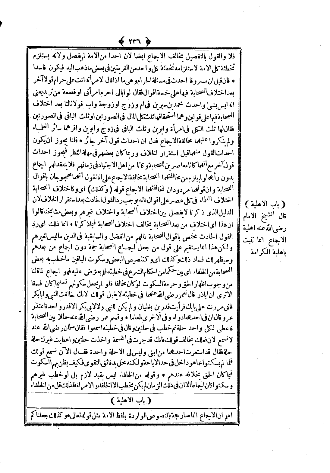 قَالَ الشَّيْخُ الْإِمَامُ - رَضِيَ اللَّهُ عَنْهُ - أَهْلِيَّةُ الْإِجْمَاعِ إنَّمَا تَثْبُتُ بِأَهْلِيَّةِ الْكَرَامَةِ
