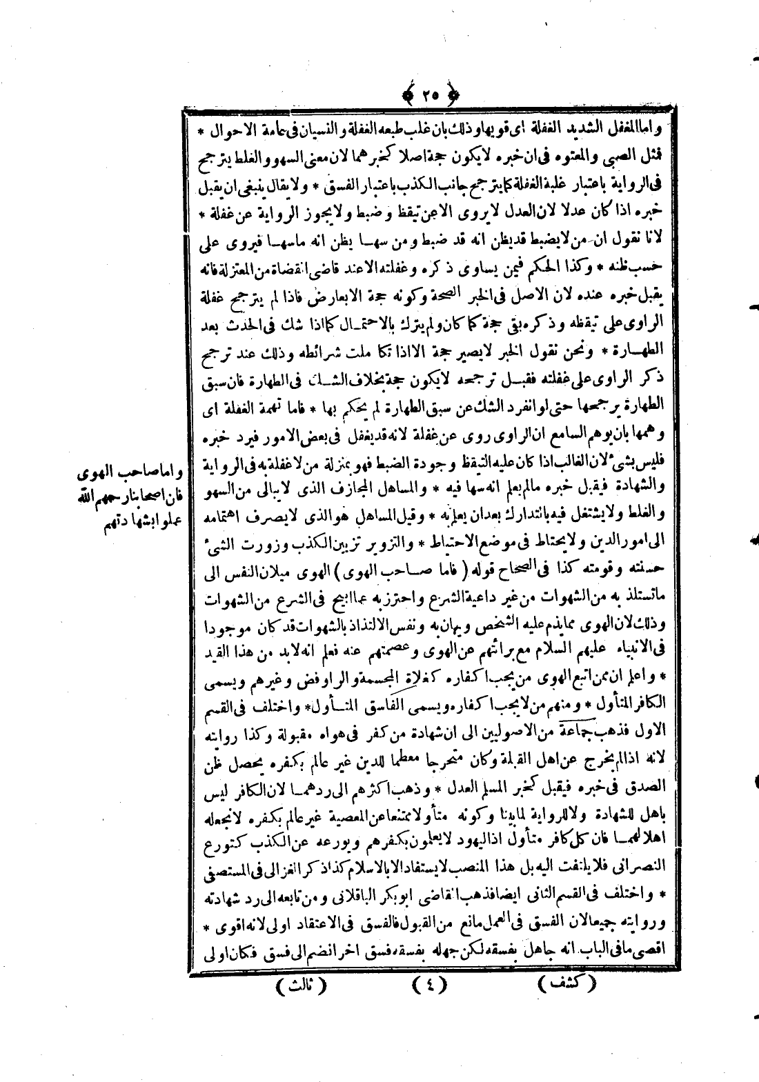 قَوْلُهُ (فَأَمَّا صَاحِبُ الْهَوَى) الْهَوَى مَيَلَانُ النَّفْسِ إلَى مَا تَسْتَلِذُّ بِهِ مِنْ الشَّهَوَاتِ مِنْ غَيْرِ دَاعِيَةِ الشَّرْعِ وَاحْتَرَزَ بِهِ عَمَّا أُبِيحَ فِي الشَّرْعِ مِنْ الشَّهَوَاتِ وَذَلِكَ؛ لِأَنَّ الْهَوَى مِمَّا يُذَمُّ عَلَيْهِ الشَّخْصُ وَيُهَانُ بِهِ وَنَفْسُ الِالْتِذَاذِ بِالشَّهَوَاتِ قَدْ كَانَ مَوْجُودًا فِي الْأَنْبِيَاءِ - عَلَيْهِمْ السَّلَامُ - مَعَ بَرَاءَتِهِمْ عَنْ الْهَوَى وَعِصْمَتِهِمْ عَنْهُ فَعُلِمَ أَنَّهُ لَا بُدَّ مِنْ هَذَا الْقَيْدِ، وَاعْلَمْ أَنَّ مِمَّنْ اتَّبَعَ الْهَوَى مَنْ يَجِبُ إكْفَارُهُ كَغُلَاةِ الْمُجَسِّمَةِ وَالرَّوَافِضِ وَغَيْرِهِمْ وَيُسَمَّى الْكَافِرُ الْمُتَأَوِّلُ، وَمِنْهُمْ مَنْ لَا يَجِبُ إكْفَارُهُ وَيُسَمَّى الْفَاسِقُ الْمُتَأَوِّلُ.