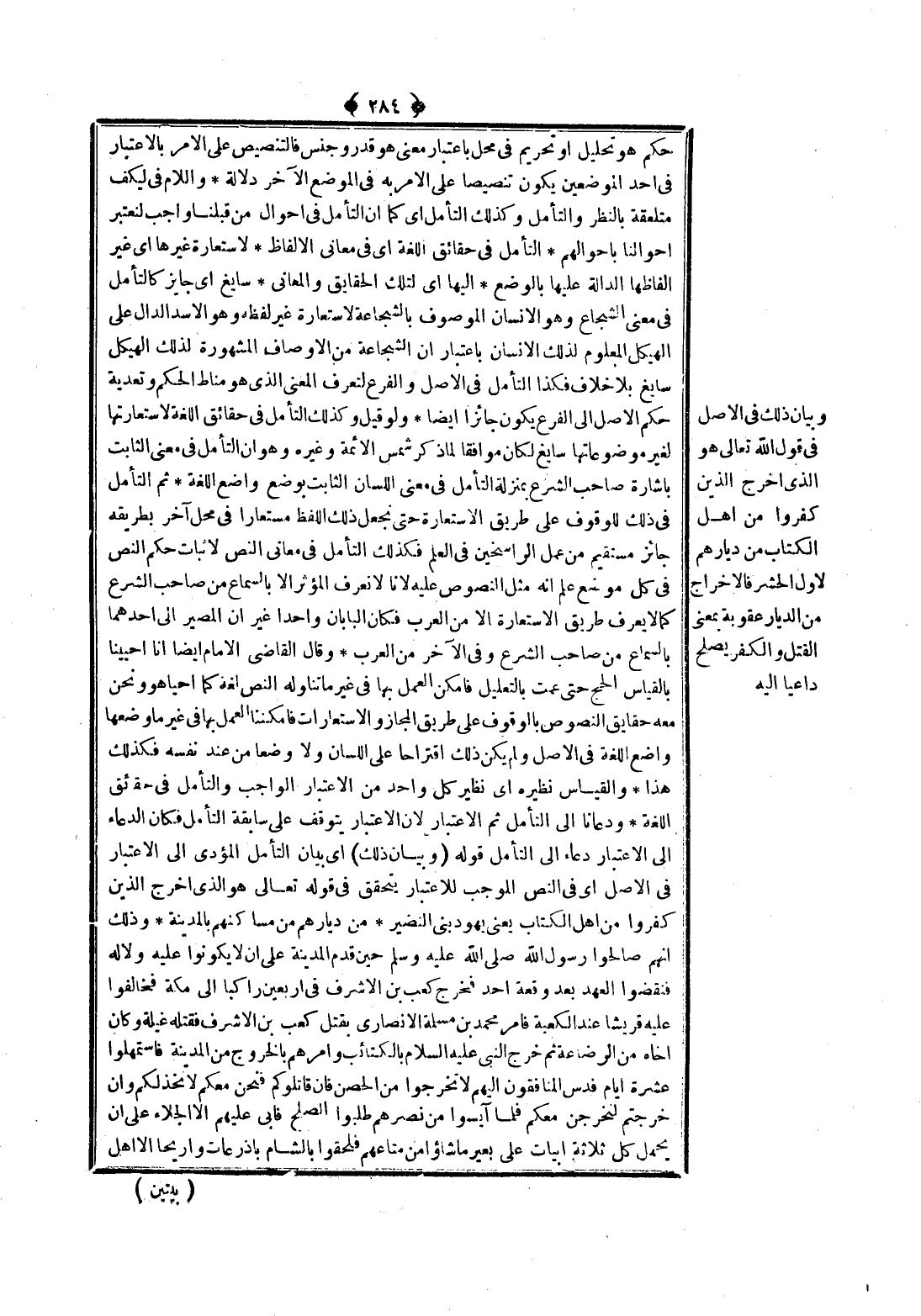 قَوْلُهُ (وَبَيَانُ ذَلِكَ) أَيْ بَيَانُ التَّأَمُّلِ الْمُؤَدِّي إلَى الِاعْتِبَارِ فِي الْأَصْلِ أَيْ فِي النَّصِّ الْمُوجِبِ لِلِاعْتِبَارِ يَتَحَقَّقُ فِي قَوْله تَعَالَى {هُوَ الَّذِي أَخْرَجَ الَّذِينَ كَفَرُوا مِنْ أَهْلِ الْكِتَابِ} [الحشر: 2] يَعْنِي يَهُودَ بَنِي النَّضِيرِ مِنْ دِيَارِهِمْ مِنْ مَسَاكِنِهِمْ بِالْمَدِينَةِ.