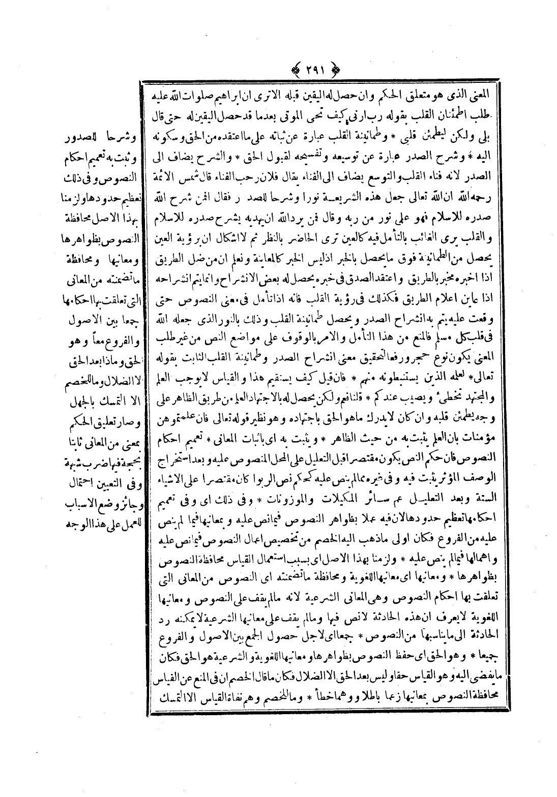 وَشَرْحًا لِلصُّدُورِ وَثَبَتَ بِهِ تَعْمِيمُ أَحْكَامِ النُّصُوصِ وَفِي ذَلِكَ تَعْظِيمُ حُدُودِهَا.