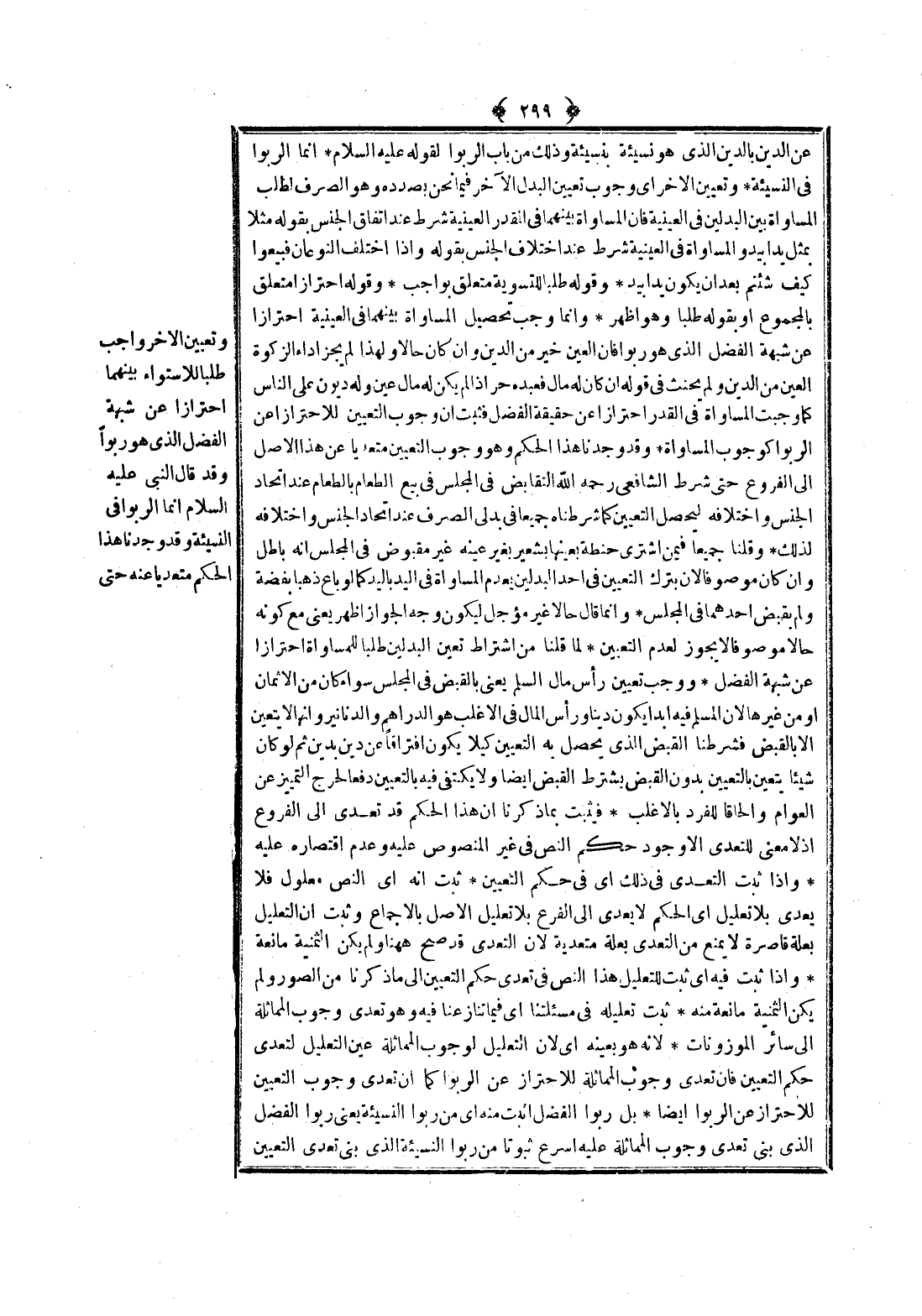 ـــــــــــــــــــــــــــــQعَنْ الدَّيْنِ بِالدَّيْنِ الَّذِي هُوَ نَسِيئَةٌ بِنَسِيئَةٍ، وَذَلِكَ مِنْ بَابِ الرِّبَا لِقَوْلِهِ - عَلَيْهِ السَّلَامُ - «إنَّمَا الرِّبَا فِي النَّسِيئَةِ» .