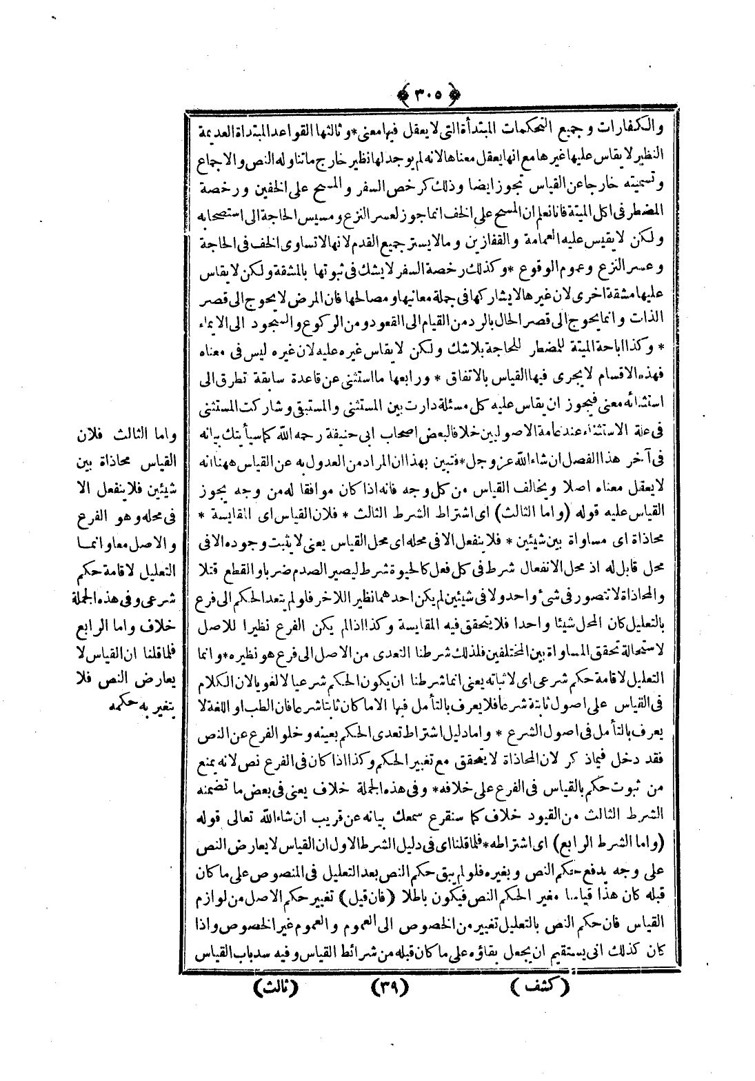 وَأَمَّا الثَّالِثُ فَلِأَنَّ الْقِيَاسَ مُحَاذَاةٌ بَيْنَ شَيْئَيْنِ فَلَا يَنْفَعِلُ إلَّا فِي مَحَلِّهِ، وَهُوَ الْفَرْعُ وَالْأَصْلُ مَعًا، وَإِنَّمَا التَّعْلِيلُ لِإِقَامَةِ حُكْمٍ شَرْعِيٍّ، وَفِي هَذِهِ الْجُمْلَةِ خِلَافٌ، وَأَمَّا الرَّابِعُ فَلِمَا قُلْنَا: إنَّ الْقِيَاسَ لَا يُعَارِضُ النَّصَّ فَلَا يَتَغَيَّرُ بِهِ حُكْمُهُ