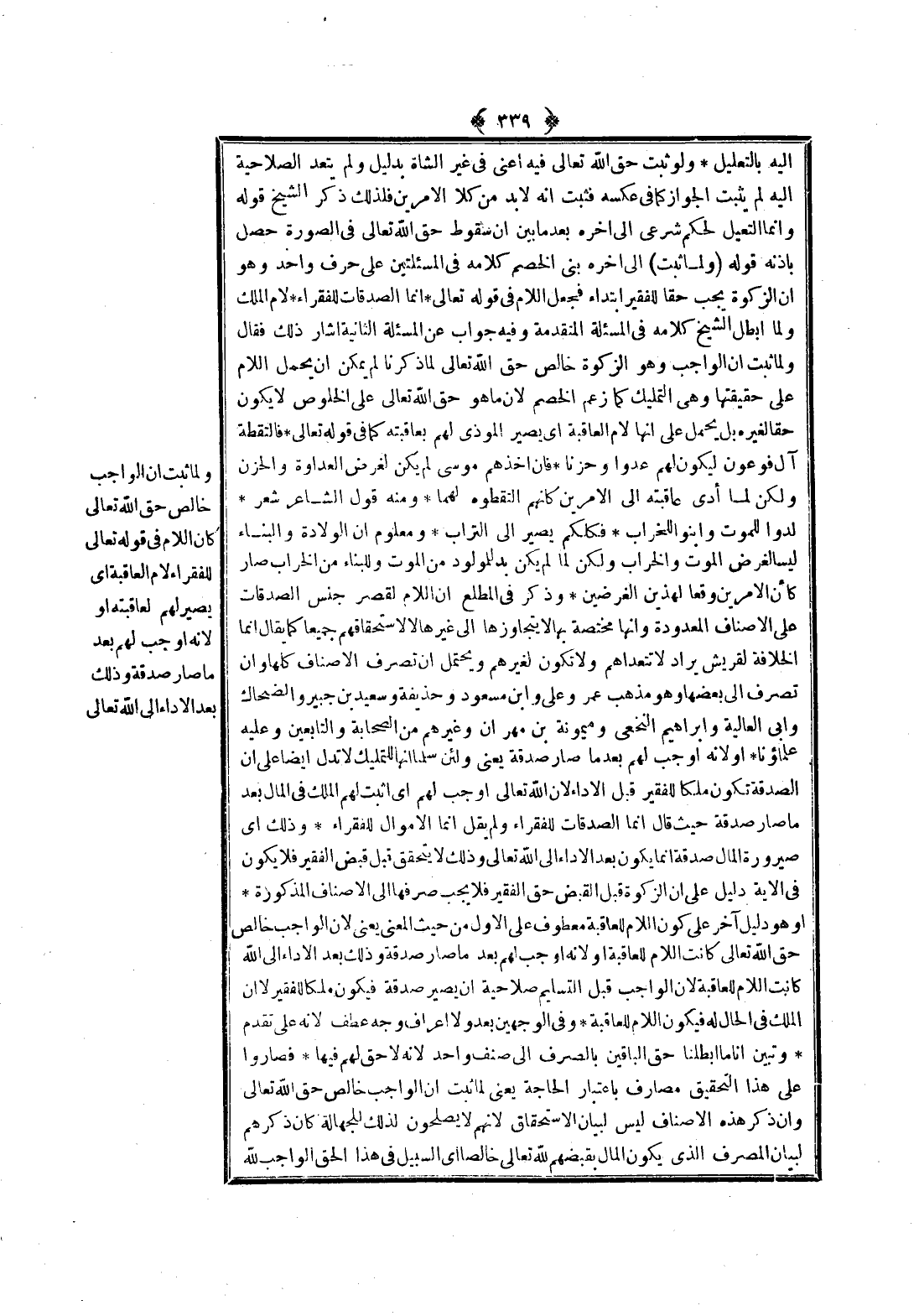 وَلَمَّا ثَبَتَ أَنَّ الْوَاجِبَ خَالِصُ حَقِّ اللَّهِ - تَعَالَى - كَانَ اللَّامُ فِي قَوْله تَعَالَى {لِلْفُقَرَاءِ} [التوبة: 60] لَامَ الْعَاقِبَةِ أَيْ يَصِيرُ لَهُمْ لِعَاقِبَتِهِ أَوْ لِأَنَّهُ وَاجِبٌ لَهُمْ بَعْدَ مَا صَارَ صَدَقَةً، وَذَلِكَ بَعْدَ الْأَدَاءِ إلَى اللَّهِ تَعَالَى