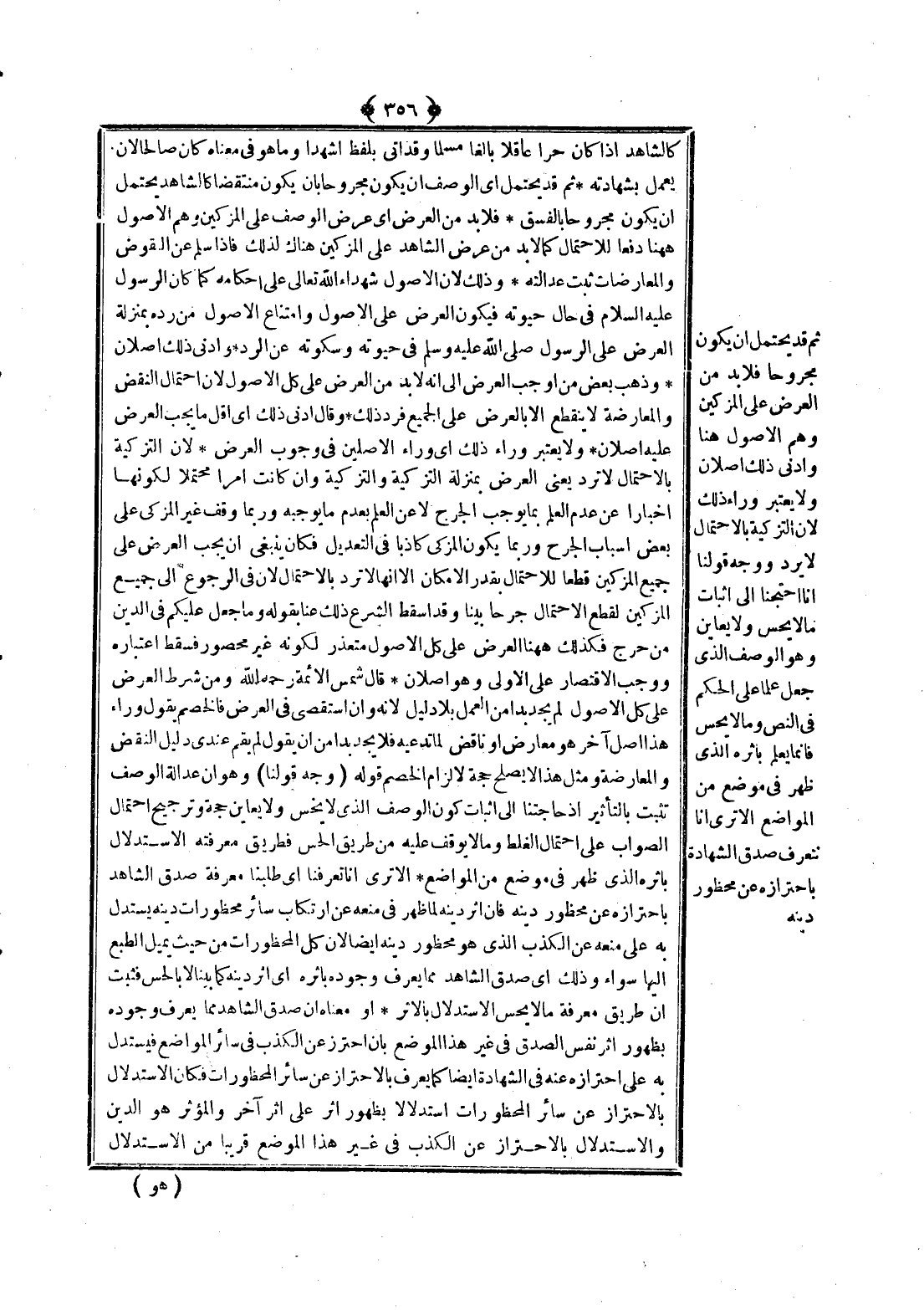 أَوْ مَعْنَاهُ أَنَّ صِدْقَ الشَّاهِدِ مِمَّا يُعْرَفُ وُجُودُهُ بِظُهُورِ أَثَرِ نَفْسِ الصِّدْقِ فِي غَيْرِ هَذَا الْمَوْضِعِ بِأَنْ احْتَرَزَ عَنْ الْكَذِبِ فِي سَائِرِ الْمَوَاضِعِ فَيُسْتَدَلُّ بِهِ عَلَى احْتِرَازٍ عَنْهُ فِي الشَّهَادَةِ أَيْضًا كَمَا يُعْرَفُ بِالِاحْتِرَازِ عَنْ سَائِرِ الْمَحْظُورَاتِ فَكَانَ الِاسْتِدْلَال بِالِاحْتِرَازِ عَنْ سَائِرِ الْمَحْظُورَاتِ اسْتِدْلَالًا بِظُهُورِ أَثَرٍ عَلَى أَثَرٍ آخَرَ وَالْمُؤَثِّرُ هُوَ الدِّينُ، وَالِاسْتِدْلَالُ بِالِاحْتِرَازِ عَنْ الْكَذِبِ فِي غَيْرِ هَذَا الْمَوْضِعِ قَرِيبًا مِنْ الِاسْتِدْلَالِ