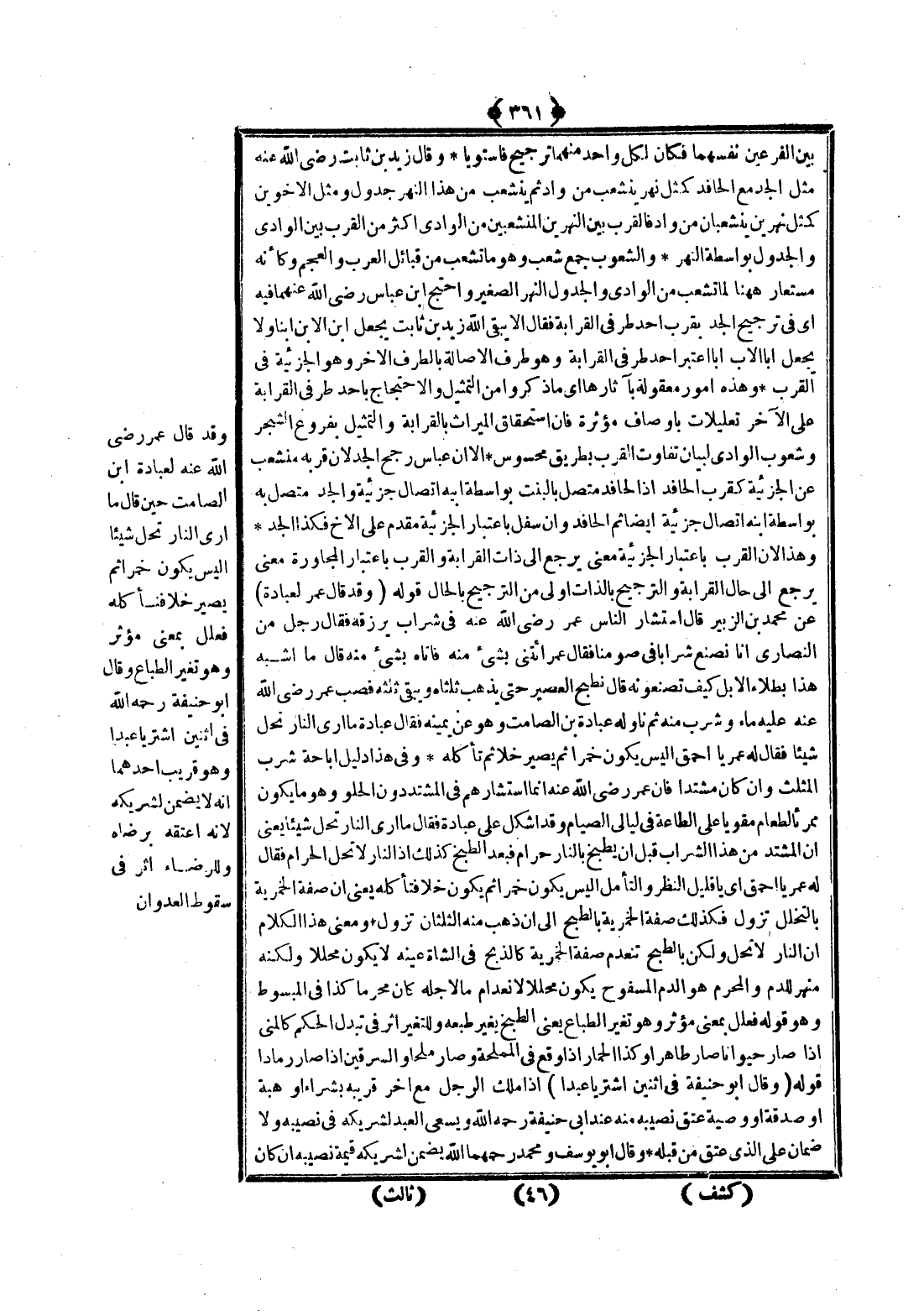 ـــــــــــــــــــــــــــــQبَيْنَ الْفَرْعَيْنِ نَفْسِهِمَا فَكَانَ لِكُلِّ وَاحِدٍ مِنْهُمَا تَرْجِيحٌ فَاسْتَوَيَا وَقَالَ زَيْدُ بْنُ ثَابِتٍ - رَضِيَ اللَّهُ عَنْهُ - مَثَلُ الْجَدِّ مَعَ الْحَافِدِ كَمَثَلِ نَهْرَيْنِ يَنْشَعِبَانِ مِنْ وَادٍ ثُمَّ يَنْشَعِبُ مِنْ هَذَا النَّهْرِ جَدْوَلٌ وَمَثَلُ الْأَخَوَيْنِ كَمَثَلِ نَهْرَيْنِ يَنْشَعِبَانِ مِنْ وَادٍ فَالْقُرْبُ بَيْنَ النَّهْرَيْنِ الْمُنْشَعِبَيْنِ مِنْ الْوَادِي أَكْثَرُ مِنْ الْقُرْبِ بَيْنَ الْوَادِي، وَالْجَدْوَلُ بِوَاسِطَةِ النَّهْرِ.