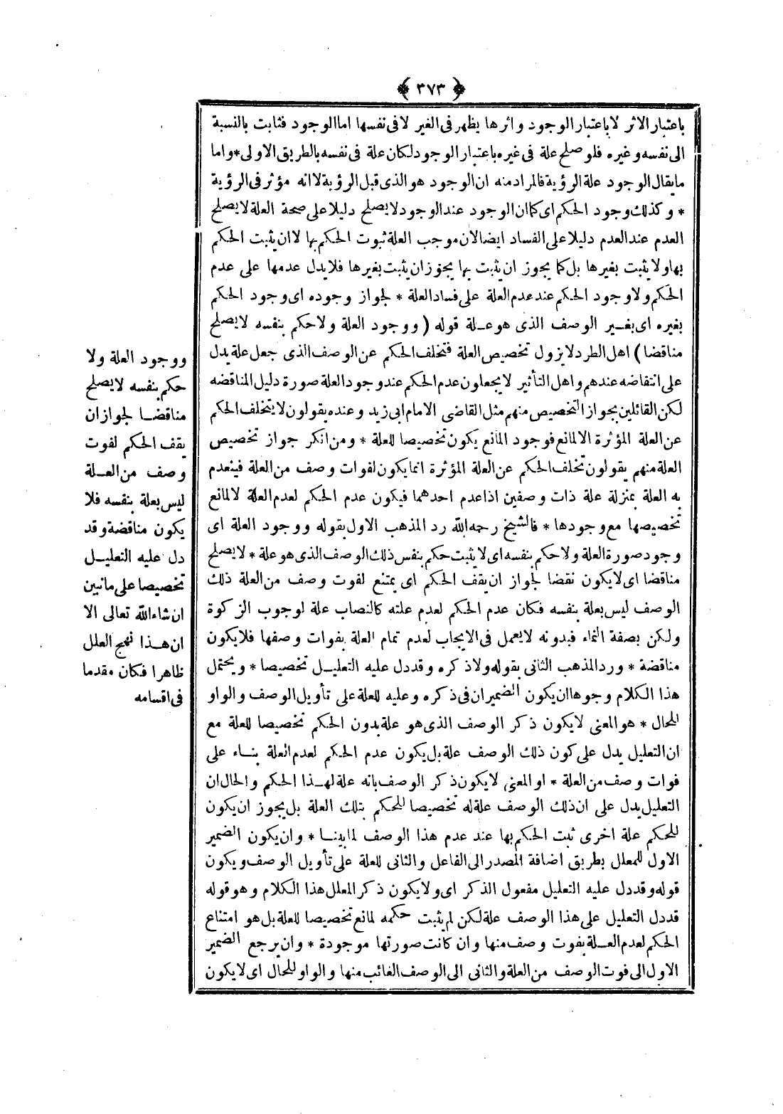 ـــــــــــــــــــــــــــــQبِاعْتِبَارِ الْأَثَرِ لَا بِاعْتِبَارِ الْوُجُودِ وَأَثَرُهَا يَظْهَرُ فِي الْغَيْرِ لَا فِي نَفْسِهَا أَمَّا الْوُجُودُ فَثَابِتٌ بِالنِّسْبَةِ إلَى نَفْسِهِ وَغَيْرُهُ فَلَوْ صَلَحَ عِلَّةً فِي غَيْرِهِ بِاعْتِبَارِ الْوُجُودِ لَكِنْ عِلَّةً فِي نَفْسِهِ بِالطَّرِيقِ الْأُولَى وَأَمَّا مَا يُقَالُ الْوُجُودُ عِلَّةُ الرُّؤْيَةِ فَالْمُرَادُ أَنَّ الْوُجُودَ هُوَ الَّذِي قَبْلَ الرُّؤْيَةِ لَا أَنَّهُ مُؤَثِّرٌ فِي الرُّؤْيَةِ.