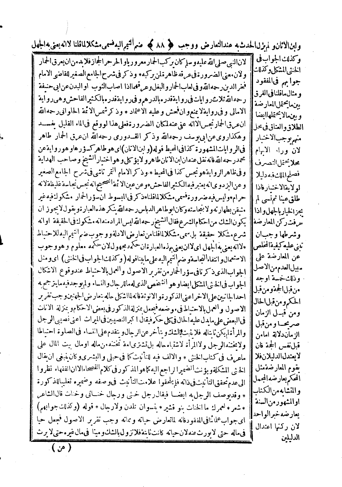 وَلَبَنُ الْأَتَانِ وَلَمْ يَزُلْ الْحَدَثُ بِهِ عِنْدَ التَّعَارُضِ وَوَجَبَ ضَمُّ التَّيَمُّمِ إلَيْهِ فَسُمِّيَ مُشْكِلًا لَا أَنَّهُ يَعْنِي بِهِ الْجَهْلَ وَكَذَلِكَ الْجَوَابُ فِي الْخُنْثَى الْمُشْكِلِ وَكَذَلِكَ جَوَابُهُمْ فِي الْمَفْقُودِ، وَمِثَالُ مَا قُلْنَا فِي الْفَرْقِ بَيْنَ مَا يَحْتَمِلُ الْمُعَارَضَةَ وَبَيْنَ مَا لَا يَحْتَمِلُهَا أَيْضًا الطَّلَاقُ وَالْعَتَاقُ فِي مَحَلٍّ مِنْهُمْ يُوجِبُ الِاخْتِيَارَ؛ لِأَنَّ وَرَاءَ الْإِبْهَامِ مَحَلًّا يَحْتَمِلُ التَّصَرُّفَ فَصَلُحَ الْمِلْكُ فِيهِ دَلِيلًا لِوِلَايَةِ الِاخْتِيَارِ فَإِذَا طَلَّقَ عَيْنًا ثُمَّ نَسِيَ لَمْ يَجُزْ الْخِيَارُ بِالْجَهْلِ.