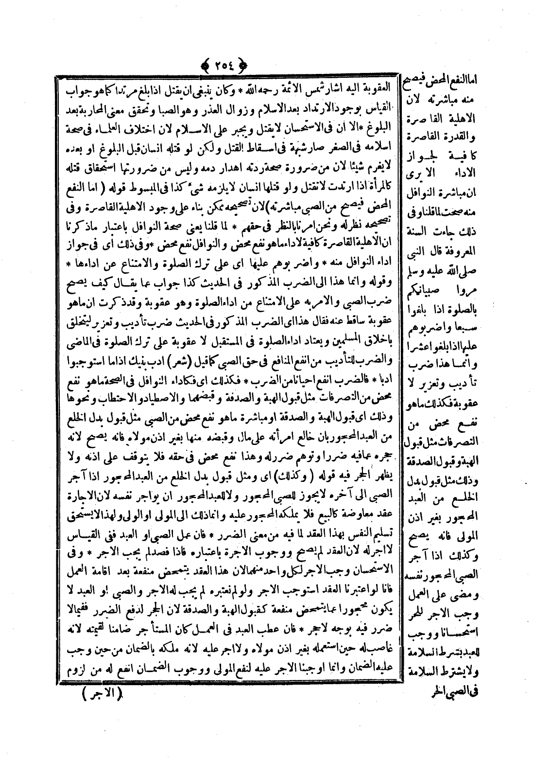 قَوْلُهُ (أَمَّا النَّفْعُ الْمَحْضُ فَيَصِحُّ مِنْ الصَّبِيِّ مُبَاشَرَتُهُ) لِأَنَّ تَصْحِيحَهُ مُمْكِنٌ بِنَاءً عَلَى وُجُودِ الْأَهْلِيَّةِ الْقَاصِرَةِ وَفِي تَصْحِيحِهِ نَظَرٌ لَهُ وَنَحْنُ أُمِرْنَا بِالنَّظَرِ فِي حَقِّهِمْ لِمَا قُلْنَا يَعْنِي صِحَّةَ النَّوَافِلِ بِاعْتِبَارِ مَا ذَكَرْنَا أَنَّ الْأَهْلِيَّةَ الْقَاصِرَةَ كَافِيَةٌ لِأَدَاءِ مَا هُوَ نَفْعٌ مَحْضٌ وَالنَّوَافِلُ نَفْعٌ مَحْضٌ وَفِي ذَلِكَ أَيْ فِي جَوَازِ أَدَاءِ النَّوَافِلِ مِنْهُ وَاضْرِبُوهُمْ عَلَيْهَا أَيْ عَلَى تَرْكِ الصَّلَاةِ وَالِامْتِنَاعِ عَنْ أَدَائِهَا.