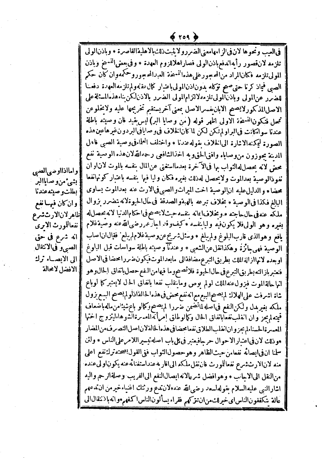 وَأَمَّا إذَا أَوْصَى الصَّبِيُّ بِشَيْءٍ مِنْ وَصَايَا الْبِرِّ بَطَلَتْ وَصِيَّتُهُ عِنْدَنَا وَإِنْ كَانَ فِيهَا نَفْعٌ ظَاهِرٌ لِأَنَّ الْإِرْثَ شُرِعَ نَفْعًا لِلْمُوَرِّثِ أَلَا يَرَى أَنَّهُ شُرِعَ فِي حَقِّ الصَّبِيِّ وَفِي الِانْتِقَالِ إلَى الْإِيصَاءِ تُرِكَ الْأَفْضَلُ لَا مَحَالَةَ