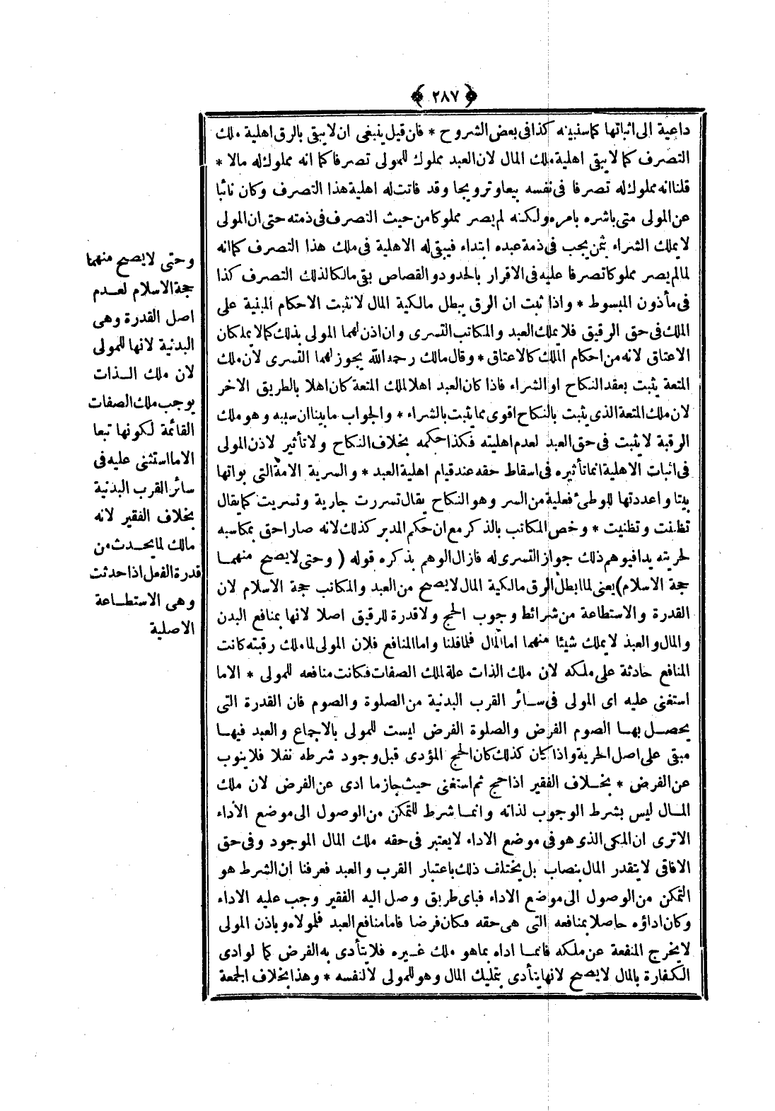 وَحَتَّى لَا يَصِحَّ مِنْهُمَا حَجَّةُ الْإِسْلَامِ لِعَدَمِ أَصْلِ الْقُدْرَةِ وَهِيَ الْبَدَنِيَّةُ لِأَنَّهَا لِلْمَوْلَى لِأَنَّ مِلْكَ الذَّاتِ يُوجِبُ مِلْكَ الصِّفَاتِ الْقَائِمَةِ لِكَوْنِهَا تَبَعًا إلَّا مَا اسْتَثْنَى عَلَيْهِ فِي سَائِرِ الْقُرَبِ الْبَدَنِيَّةِ بِخِلَافِ الْفَقِيرِ لِأَنَّهُ مَالِكٌ لِمَا يَحْدُثُ مِنْ قُدْرَةِ الْفِعْلِ إذَا حَدَثَتْ وَهِيَ الِاسْتِطَاعَةُ الْأَصْلِيَّةُ