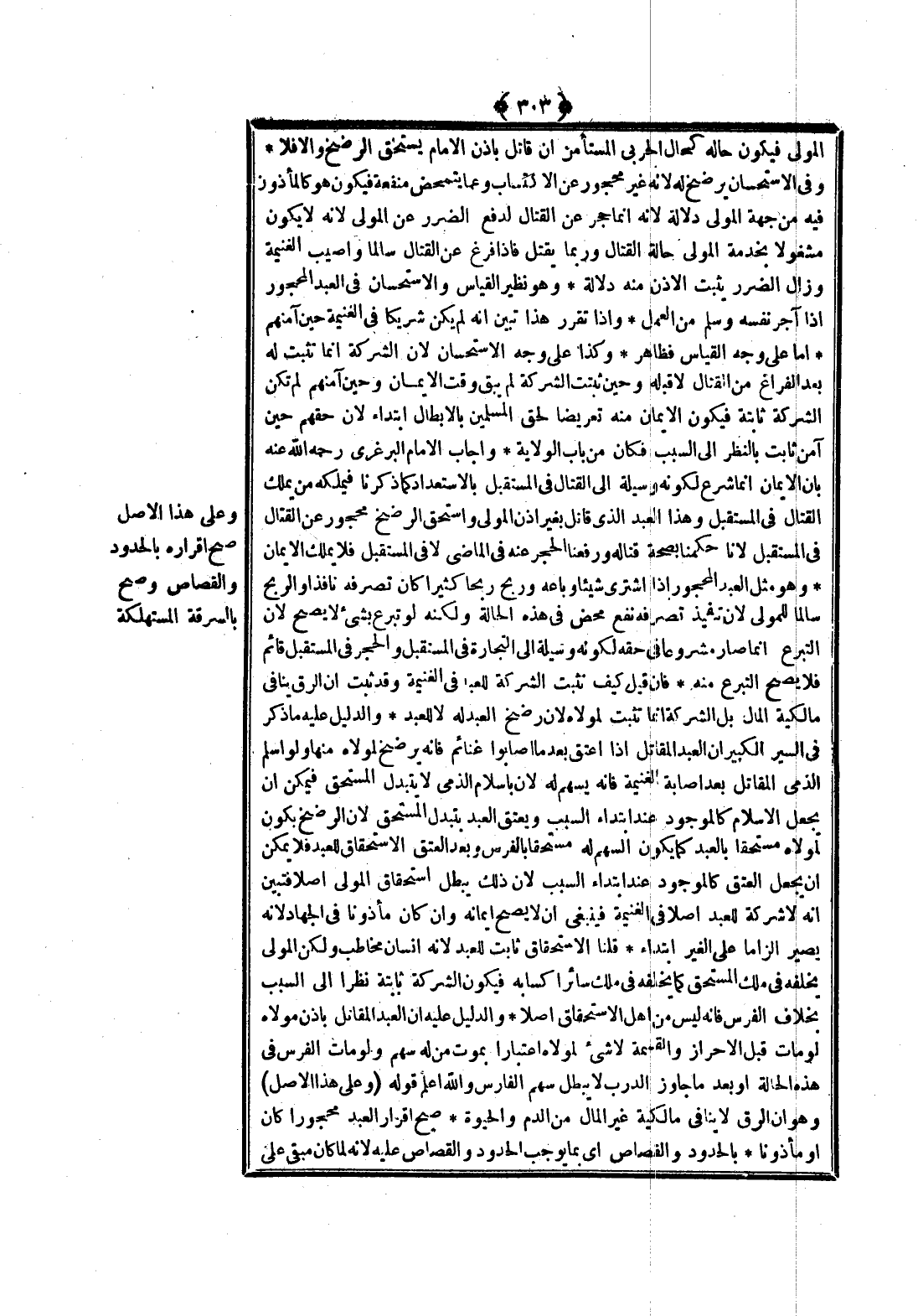 ـــــــــــــــــــــــــــــQالْمَوْلَى فَيَكُونُ حَالُهُ كَحَالِ الْحَرْبِيِّ الْمُسْتَأْمِنِ إنْ قَاتَلَ بِإِذْنِ الْإِمَامِ يَسْتَحِقُّ الرَّضْخَ وَإِلَّا فَلَا.