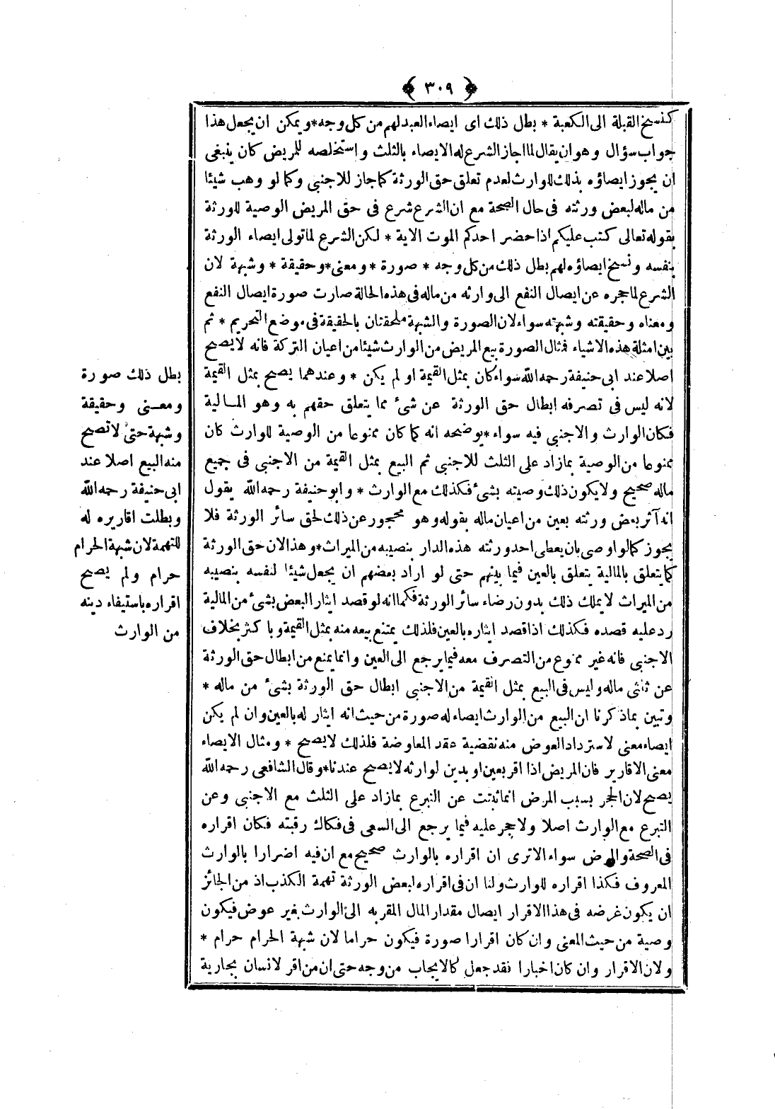 ـــــــــــــــــــــــــــــQكَنَسْخِ الْقِبْلَةِ إلَى الْكَعْبَةِ بَطَلَ ذَلِكَ أَيْ إيصَاءُ الْعَبْدِ لَهُمْ مِنْ كُلِّ وَجْهٍ وَيُمْكِنُ أَنْ يُجْعَلَ هَذَا جَوَابُ سُؤَالٍ وَهُوَ أَنْ يُقَالَ لَمَّا أَجَازَ الشَّرْعُ لَهُ الْإِيصَاءَ بِالثُّلُثِ وَاسْتَخْلَصَهُ لِلْمَرِيضِ كَانَ يَنْبَغِي أَنْ يَجُوزَ إيصَاؤُهُ بِذَلِكَ لِلْوَارِثِ لِعَدَمِ تَعَلُّقِ حَقِّ الْوَرَثَةِ كَمَا جَازَ لِلْأَجْنَبِيِّ وَكَمَا لَوْ وَهَبَ شَيْئًا مِنْ مَالِهِ لِبَعْضِ وَرَثَتِهِ فِي حَالِ الصِّحَّةِ مَعَ أَنَّ الشَّرْعَ شَرَعَ فِي حَقِّ الْمَرِيضِ الْوَصِيَّةَ لِلْوَرَثَةِ بِقَوْلِهِ تَعَالَى {كُتِبَ عَلَيْكُمْ إِذَا حَضَرَ أَحَدَكُمُ الْمَوْتُ} [البقرة: 180] الْآيَةُ لَكِنَّ الشَّرْعَ لَمَّا تَوَلَّى إيصَاءَ الْوَرَثَةِ بِنَفْسِهِ وَنَسَخَ إيصَاءَهُ لَهُمْ بَطَلَ ذَلِكَ مِنْ كُلِّ وَجْهٍ صُورَةً وَمَعْنًى وَحَقِيقَةً وَشُبْهَةً لِأَنَّ الشَّرْعَ لَمَّا حَجَرَهُ عَنْ إيصَالِ النَّفْعِ إلَى وَارِثِهِ مِنْ مَالِهِ فِي هَذِهِ الْحَالَةِ صَارَتْ صُورَةُ إيصَالِ النَّفْعِ وَمَعْنَاهُ وَحَقِيقَتُهُ وَشُبْهَتُهُ سَوَاءً لِأَنَّ الصُّورَةَ وَالشُّبْهَةَ مُلْحَقَتَانِ بِالْحَقِيقَةِ فِي مَوْضِعِ التَّحْرِيمِ.