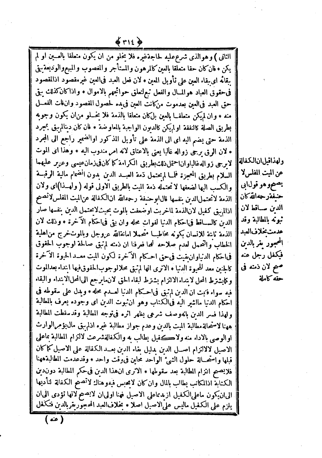 فَإِنْ كَانَ حَقًّا مُتَعَلِّقًا بِالْعَيْنِ كَالْمَرْهُونِ وَالْمُسْتَأْجَرِ وَالْمَغْصُوبِ وَالْمَبِيعِ الْوَدِيعَةِ يَبْقَى بِبَقَائِهِ أَيْ بِبَقَاءِ الْعَيْنِ عَلَى تَأْوِيلِ الْمُعَيَّنِ لِأَنَّ فِعْلَ الْعَبْدِ فِي الْعَيْنِ غَيْرُ مَقْصُودٍ إذْ الْمَقْصُودُ فِي حُقُوقِ الْعِبَادِ هُوَ الْمَالُ وَالْفِعْلُ تَبَعٌ لِتَعَلُّقِ حَوَائِجِهِمْ بِالْأَمْوَالِ وَإِذَا كَانَ كَذَلِكَ يَبْقَى حَقُّ الْعَبْدِ فِي الْعَيْنِ بَعْدَ مَوْتِ مَنْ كَانَتْ الْعَيْنُ فِي يَدِهِ لِحُصُولِ الْمَقْصُودِ وَإِنْ فَاتَ الْفِعْلُ مِنْهُ وَإِنْ لَمْ يَكُنْ مُتَعَلِّقًا بِالْعَيْنِ بَلْ كَانَ مُتَعَلِّقًا بِالذِّمَّةِ فَلَا يَخْلُو مِنْ أَنْ يَكُونَ وُجُوبُهُ بِطَرِيقِ الصِّلَةِ كَالنَّفَقَةِ أَوْ لَمْ يَكُنْ كَالدُّيُونِ الْوَاجِبَةِ بِالْمُعَاوَضَةِ فَإِنْ كَانَ دَيْنًا لَمْ يَبْقَ بِمُجَرَّدِ الذِّمَّةِ حَتَّى يُضَمَّ إلَيْهِ أَيْ إلَى الذِّمَّةِ عَلَى تَأْوِيلِ الْمَذْكُورِ أَوْ الضَّمِيرُ رَاجِعٌ إلَى الْمُجَرَّدِ لِأَنَّ الرِّقَّ يُرْجَى زَوَالُهُ غَالِبًا يَعْنِي بِالْإِعْتَاقِ لِأَنَّهُ أَمْرٌ مَنْدُوبٌ إلَيْهِ وَهَذَا أَيْ الْمَوْتُ لَا يُرْجَى زَوَالُهُ غَالِبًا وَإِنْ احْتَمَلَ ذَلِكَ بِطَرِيقِ الْكَرَامَةِ كَمَا كَانَ فِي زَمَانِ عِيسَى وَعُزَيْرٍ - عَلَيْهِمَا السَّلَامُ - بِطَرِيقِ الْمُعْجِزَةِ فَلَمَّا لَمْ يَحْتَمِلْ ذِمَّةُ الْعَبْدِ الدَّيْنَ بِدُونِ انْضِمَامِ مَالِيَّةِ الرَّقَبَةِ وَالْكَسْبِ إلَيْهَا لِضَعْفِهَا لَا تَحْتَمِلُهُ ذِمَّةُ الْمَيِّتِ بِالطَّرِيقِ الْأَوَّلِ قَوْلُهُ (وَلِهَذَا) أَيْ وَلِأَنَّ الذِّمَّةَ لَا تَحْتَمِلُ الدَّيْنَ بِنَفْسِهَا قَالَ أَبُو حَنِيفَةَ - رَحِمَهُ اللَّهُ - إنَّ الْكَفَالَةَ عَنْ الْمَيِّتِ الْمُفْلِسِ لَا تَصِحُّ إذَا لَمْ يَبْقَ كَفِيلٌ لِأَنَّ الذِّمَّةَ لَمَّا خَرِبَتْ أَوْ ضَعُفَتْ بِالْمَوْتِ بِحَيْثُ لَا يَحْتَمِلُ الدَّيْنَ بِنَفْسِهَا صَارَ الدَّيْنُ كَالسَّاقِطِ فِي أَحْكَامِ الدُّنْيَا لِفَوَاتِ مَحَلِّهِ وَإِنْ بَقِيَ فِي أَحْكَامِ الْآخِرَةِ وَذَلِكَ لِأَنَّ الذِّمَّةَ ثَابِتَةٌ لِلْإِنْسَانِ بِكَوْنِهِ مُخَاطَبًا مُتَحَمِّلًا أَمَانَةَ اللَّهِ عَزَّ وَجَلَّ وَبِالْمَوْتِ خَرَجَ مِنْ أَهْلِيَّةِ الْخِطَابِ وَالتَّحَمُّلِ لِعَدَمِ صَلَاحِهِ لَهُمَا فَعَرَفْنَا أَنَّ ذِمَّتَهُ لَمْ تَبْقَ صَالِحَةً لِوُجُوبِ الْحُقُوقِ فِي أَحْكَامِ الدُّنْيَا وَإِنْ بَقِيَتْ فِي حَقِّ أَحْكَامِ الْآخِرَةِ لِكَوْنِ الْمَيِّتِ مُعَدًّا لِلْحَيَاةِ الْآخِرَةِ كَالْجَنِينِ مُعَدًّا لِلْحَيَاةِ الدُّنْيَا.
