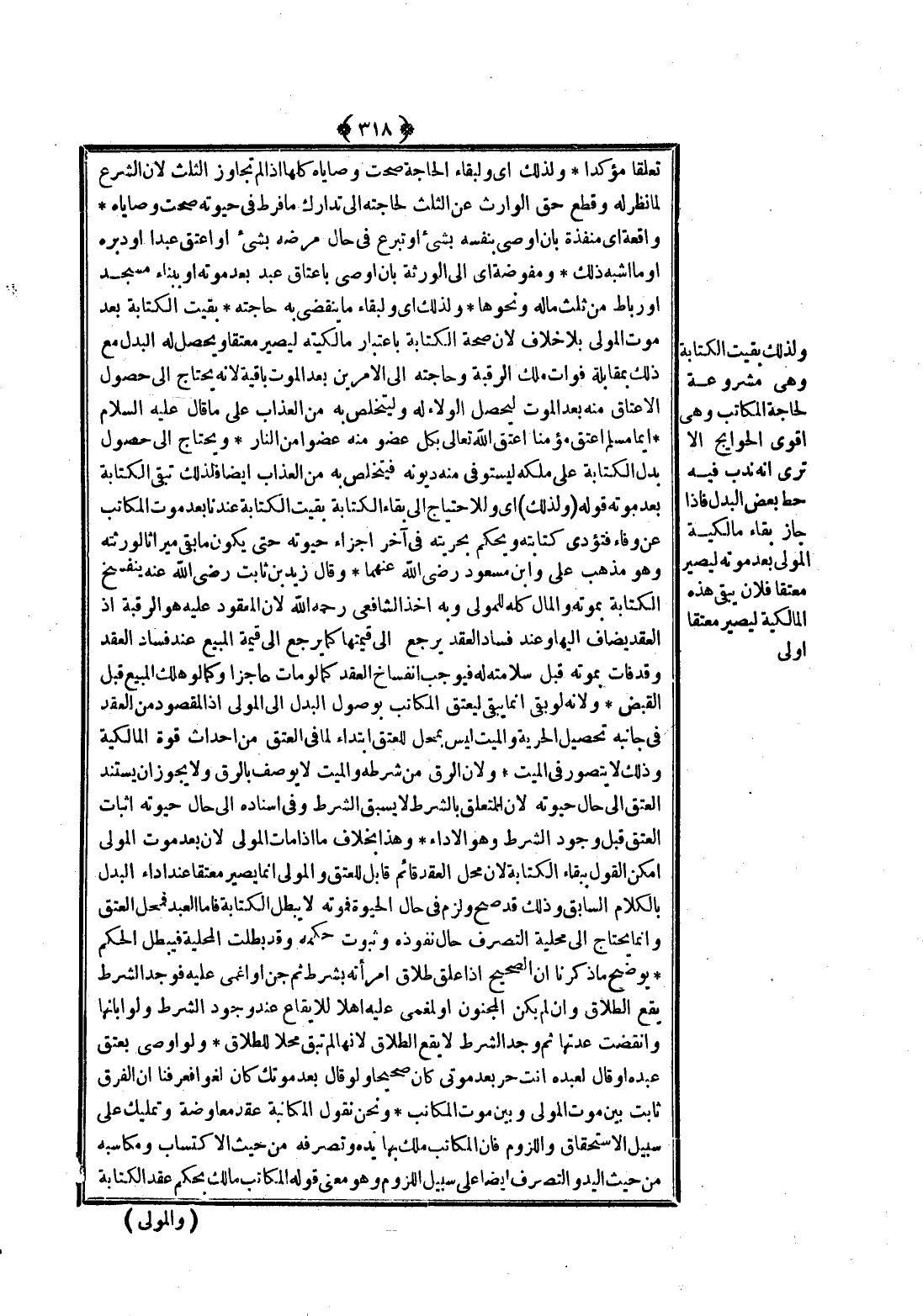 وَلِذَلِكَ بَقِيَتْ الْكِتَابَةُ وَهِيَ مَشْرُوعَةٌ لِحَاجَةِ الْمُكَاتَبِ وَهِيَ أَقْوَى الْحَوَائِجِ أَلَا تَرَى أَنَّهُ نُدِبَ فِيهِ حَطُّ بَعْضِ الْبَدَلِ فَإِذَا جَازَ بَقَاءُ مَالِكِيَّةِ الْمَوْلَى بَعْدَ مَوْتِهِ لِيَصِيرَ مُعْتِقًا فَلَأَنْ يَبْقَى هَذِهِ الْمَالِكِيَّةُ لِيَصِيرَ مُعْتِقًا أَوْلَى