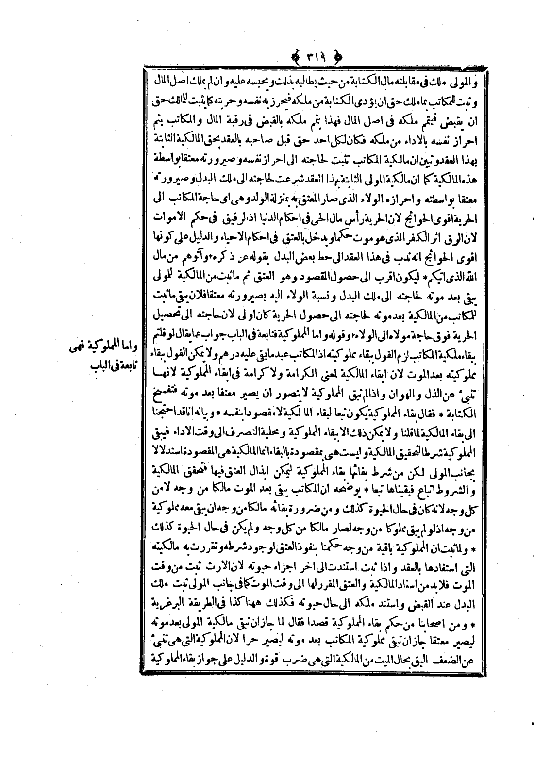 وَأَمَّا الْمَمْلُوكِيَّةُ فَهِيَ تَابِعَةٌ فِي الْبَابِ