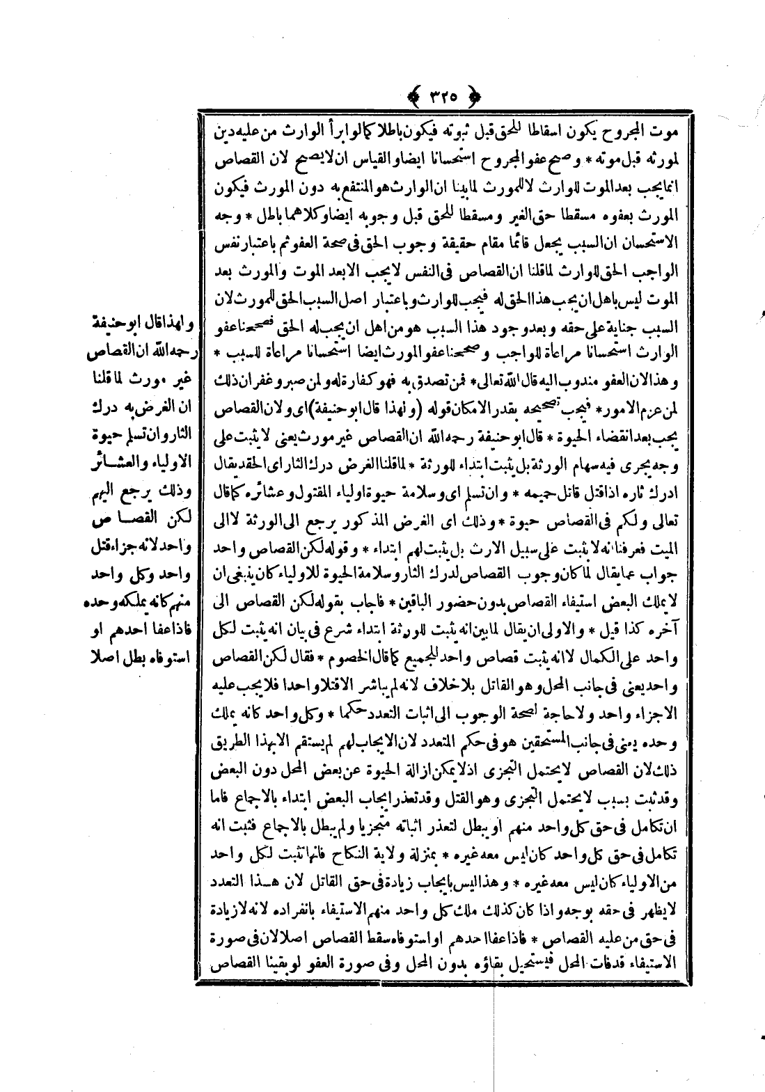 وَلِهَذَا قَالَ أَبُو حَنِيفَةَ - رَحِمَهُ اللَّهُ - إنَّ الْقِصَاصَ غَيْرُ مَوْرُوثٍ لِمَا قُلْنَا إنَّ الْغَرَضَ بِهِ دَرْكُ الثَّأْرِ وَإِنْ تَسَلَّمَ حَيَاةَ الْأَوْلِيَاءِ وَالْعَشَائِرِ وَذَلِكَ يَرْجِعُ إلَيْهِمْ لَكِنَّ الْقِصَاصَ وَاحِدٌ لِأَنَّهُ جَزَاءٌ قُتِلَ وَاحِدٌ وَكُلُّ وَاحِدٍ مِنْهُمْ كَأَنَّهُ يَمْلِكُهُ وَحْدَهُ فَإِذَا عَفَا أَحَدُهُمْ أَوْ اسْتَوْفَاهُ بَطَلَ أَصْلًا