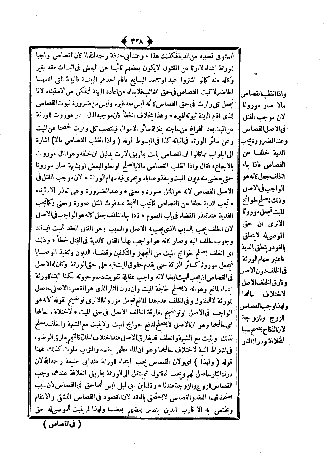 وَإِذَا انْقَلَبَ الْقِصَاصُ مَالًا صَارَ مَوْرُوثًا لِأَنَّ مُوجَبَ الْقَتْلِ فِي الْأَصْلِ الْقِصَاصُ وَعِنْدَ الضَّرُورَةِ يَجِبُ الدِّيَةُ خَلَفًا عَنْ الْقِصَاصِ فَإِذَا جَاءَ الْخَلَفُ جُعِلَ كَأَنَّهُ هُوَ الْوَاجِبُ فِي الْأَصْلِ وَذَلِكَ يَصْلُحُ لِحَوَائِجِ الْمَيِّتِ فَجُعِلَ مَوْرُوثًا أَلَا تَرَى أَنَّ حَقَّ الْمُوصَى لَهُ لَا يَتَعَلَّقُ بِالْقَوَدِ وَيَتَعَلَّقُ بِالدِّيَةِ فَاعْتُبِرَ سِهَامُ الْوَرَثَةِ فِي الْخَلَفِ دُونَ الْأَصْلِ وَفَارَقَ الْخَلَفُ الْأَصْلَ لِاخْتِلَافِ حَالِهِمَا وَلِهَذَا وَجَبَ الْقِصَاصُ لِلزَّوْجِ وَلِلزَّوْجَةِ لِأَنَّ النِّكَاحَ يَصْلُحُ سَبَبًا لِلْخِلَافَةِ وَدَرْكِ الثَّأْرِ
