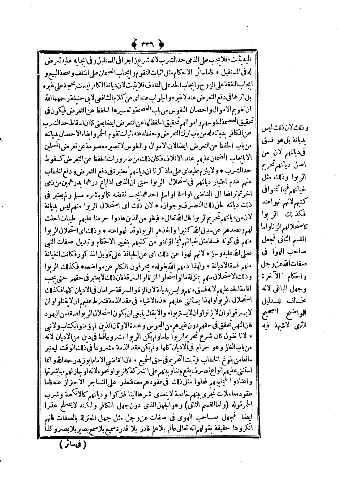 ـــــــــــــــــــــــــــــQإلَيْهِ يَثْبُتَ. فَلَا يَجِبُ عَلَى الذِّمِّيِّ حَدُّ الشُّرْبِ؛ لِأَنَّهُ شُرِعَ زَاجِرًا فِي الْمُسْتَقْبَلِ وَفِي إيجَابِهِ عَلَيْهِ تَعَرُّضٌ لَهُ فِي الْمُسْتَقْبَلِ. فَأَمَّا سَائِرُ الْأَحْكَامِ مِثْلُ إثْبَاتِ التَّقَوُّمِ وَإِيجَابِ الضَّمَانِ عَلَى الْمُتْلِفِ وَصِحَّةِ الْبَيْعِ وَإِيجَابِ النَّفَقَةِ عَلَى الزَّوْجِ وَإِيجَابِ الْحَدِّ عَلَى الْقَاذِفِ فَلَا يَثْبُتُ؛ لِأَنَّ دِيَانَةَ الْكَافِرِ لَيْسَتْ بِحُجَّةٍ عَلَى غَيْرِهِ بَلْ أَثَرُهَا فِي دَفْعِ التَّعَرُّضِ عَنْهُ لَا غَيْرُ.
