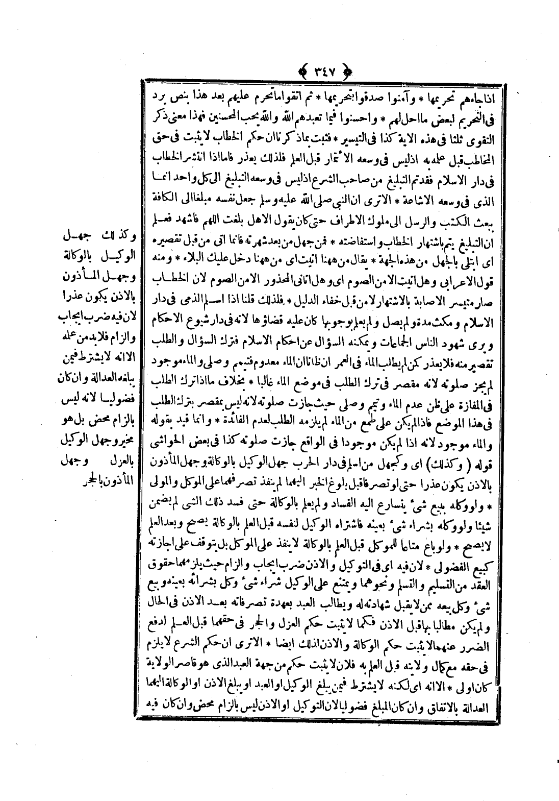 قَوْلُهُ (وَكَذَلِكَ) أَيْ وَكَجَهْلِ مَنْ أَسْلَمَ فِي دَارِ الْحَرْبِ جَهْلُ الْوَكِيلِ بِالْوَكَالَةِ وَجَهْلُ الْمَأْذُونِ بِالْإِذْنِ يَكُونُ عُذْرًا حَتَّى لَوْ تَصَرَّفَا قَبْلَ بُلُوغِ الْخَبَرِ إلَيْهِمَا لَمْ يَنْفُذْ تَصَرُّفُهُمَا عَلَى الْمُوَكِّلِ وَالْمَوْلَى.