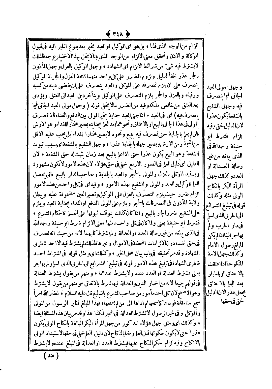 وَجَهْلُ مَوْلَى الْعَبْدِ الْجَانِي فِيمَا يَتَصَرَّفُ فِيهِ وَجَهْلُ الشَّفِيعِ بِالشُّفْعَةِ يَكُونُ عُذْرًا؛ لِأَنَّ الدَّلِيلَ خَفِيٌّ وَفِيهِ إلْزَامٌ فَشَرَطَ أَبُو حَنِيفَةَ - رَحِمَهُ اللَّهُ - فِي الَّذِي يُبَلِّغُهُ مِنْ غَيْرِ رِسَالَةٍ الْعَدَالَةَ أَوْ الْعَدَدَ وَكَذَلِكَ جَهْلُ الْمَرْأَةِ الْبِكْرِ بِإِنْكَاحِ الْوَلِيِّ مِثْلُهُ، وَكَذَلِكَ قَوْلُهُ فِي تَبْلِيغِ الشَّرَائِعِ إلَى الْحَرْبِيِّ الَّذِي أَسْلَمَ فِي دَارِ الْحَرْبِ وَلَمْ يُهَاجِرْ إلَيْنَا إذَا لَمْ يَكُنْ الْمُبَلِّغُ رَسُولَ الْإِمَامِ، وَكَذَلِكَ جَهْلُ الْأَمَةِ الْمَنْكُوحَةِ إذَا أُعْتِقَتْ بِالْإِعْتَاقِ أَوْ بِالْخِيَارِ بَعْدَ الْعِلْمِ بِالْإِعْتَاقِ يُجْعَلُ عُذْرًا؛ لِأَنَّ الدَّلِيلَ خَفِيٌّ فِي حَقِّهَا