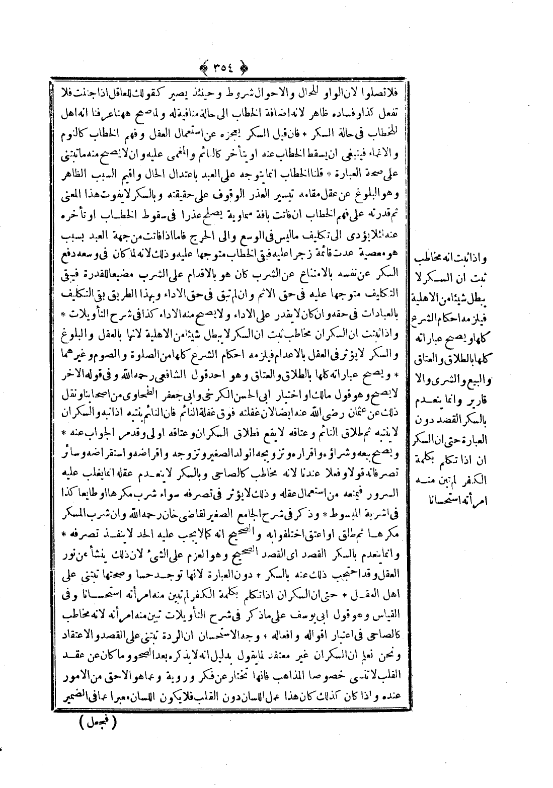 ـــــــــــــــــــــــــــــQفَلَا تُصَلُّوا؛ لِأَنَّ الْوَاوَ لِلْحَالِ وَالْأَحْوَالُ شُرُوطٌ وَحِينَئِذٍ يَصِيرُ كَقَوْلِك لِلْعَاقِلِ إذَا جُنِنْت فَلَا تَفْعَلْ كَذَا وَفَسَادُهُ ظَاهِرٌ؛ لِأَنَّهُ إضَافَةُ الْخِطَابِ إلَى حَالَةٍ مُنَافِيَةٍ لَهُ وَلَمَّا صَحَّ هَاهُنَا عَرَفْنَا أَنَّهُ أَهْلٌ لِلْخِطَابِ فِي حَالَةِ السُّكْرِ فَإِنْ قِيلَ السُّكْرُ يُعْجِزُهُ عَنْ اسْتِعْمَالِ الْعَقْلِ وَفَهْمِ الْخِطَابِ كَالنَّوْمِ وَالْإِغْمَاءِ فَيَنْبَغِي أَنْ يَسْقُطَ الْخِطَابُ عَنْهُ أَوْ يَتَأَخَّرَ كَالنَّائِمِ وَالْمُغْمَى عَلَيْهِ وَإِنْ لَا يَصِحَّ مِنْهُ مَا تُبْتَنَى عَلَى صِحَّةِ الْعِبَارَةِ.