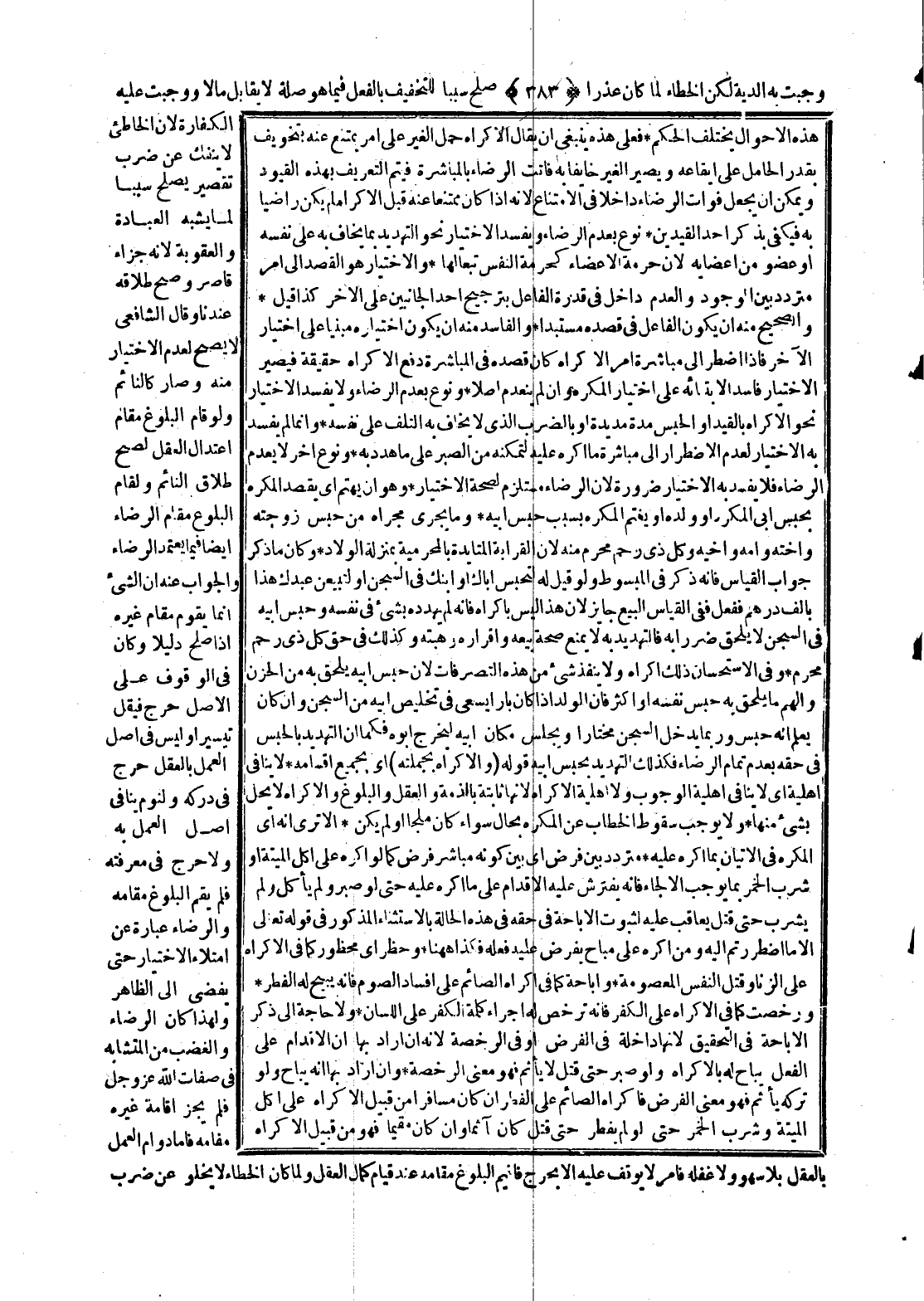 قَوْلُهُ (وَالْإِكْرَاهُ بِجُمْلَتِهِ) أَيْ بِجَمِيعِ أَقْسَامِهِ لَا يُنَافِي أَهْلِيَّةَ أَيْ لَا يُنَافِي أَهْلِيَّةَ الْوُجُوبِ وَلَا أَهْلِيَّةَ الْإِكْرَاهِ؛ لِأَنَّهَا ثَابِتَةٌ بِالذِّمَّةِ، وَالْعَقْلُ وَالْبُلُوغُ وَالْإِكْرَاهُ لَا يَحِلُّ بِشَيْءٍ مِنْهَا وَلَا يُوجِبُ سُقُوطَ الْخِطَابِ عَنْ الْمُكْرَهِ بِحَالٍ سَوَاءٌ كَانَ مَلْجَأً أَوْ لَمْ يَكُنْ.
