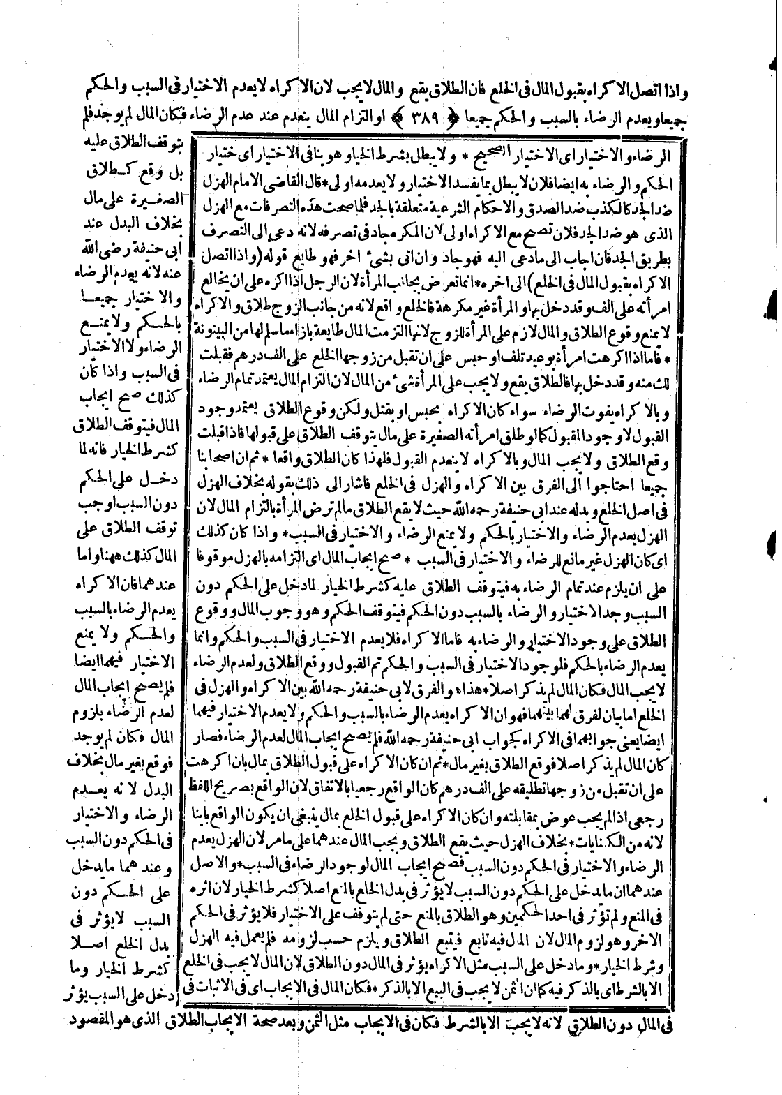 وَإِذَا كَانَ كَذَلِكَ أَيْ كَانَ الْهَزْلُ غَيْرَ مَانِعٍ لِلرِّضَى وَالِاخْتِيَارِ فِي السَّبَبِ صَحَّ إيجَابُ الْمَالِ أَيْ الْتِزَامُهُ بِالْهَزْلِ مَوْقُوفًا عَلَى أَنْ يَلْزَمَ عِنْدَ تَمَامِ الرِّضَا بِهِ فَيَتَوَقَّفُ الطَّلَاقُ عَلَيْهِ كَشَرْطِ الْخِيَارِ لَمَّا دَخَلَ عَلَى الْحُكْمِ دُونَ السَّبَبِ وُجِدَ الِاخْتِيَارُ وَالرِّضَا بِالسَّبَبِ دُونَ الْحُكْمِ فَيَتَوَقَّفُ الْحُكْمُ وَهُوَ وُجُوبُ الْمَالِ وَوُقُوعُ الطَّلَاقِ عَلَى وُجُودِ الِاخْتِيَارِ وَالرِّضَا بِهِ فَأَمَّا الْإِكْرَاهُ فَلَا يُعْدِمُ الِاخْتِيَارَ فِي السَّبَبِ وَالْحُكْمِ وَإِنَّمَا يُعْدِمُ الرِّضَا بِالْحُكْمِ فَلِوُجُودِ الِاخْتِيَارِ فِي السَّبَبِ وَالْحُكْمِ تَمَّ الْقَبُولُ وَوَقَعَ الطَّلَاقُ وَلِعَدَمِ الرِّضَا لَا يَجِبُ الْمَالُ فَكَأَنَّ الْمَالَ لَمْ يُذْكَرْ أَصْلًا.