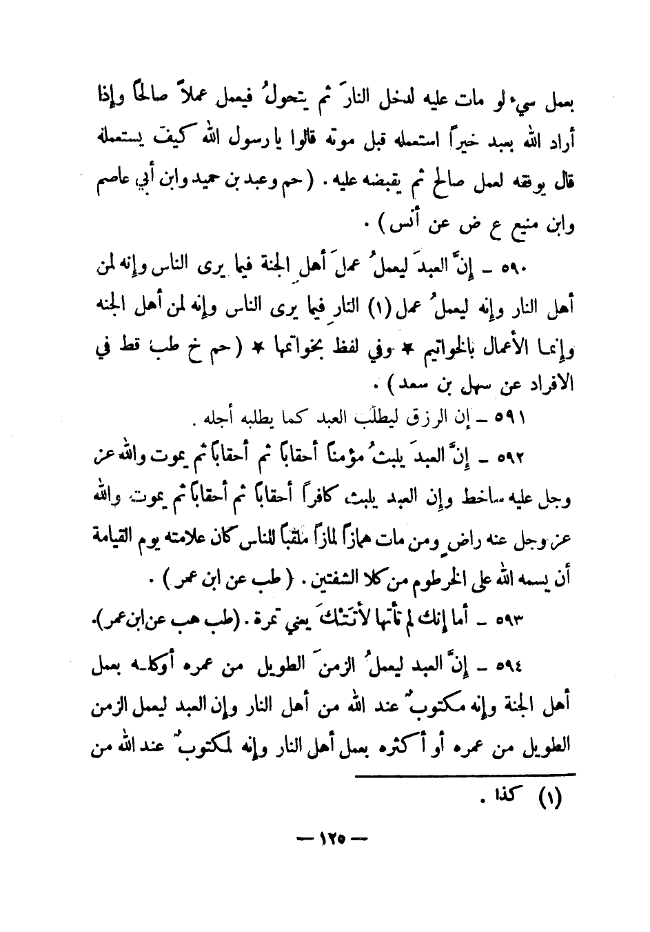 594 – "إن العبد ليعمل الزمن الطويل من عمره أو كله بعمل أهل الجنة وإنه مكتوب عند الله من أهل النار وإن العبد ليعمل الزمن الطويل من عمره أو أكثره بعمل أهل النار وإنه لمكتوب عند الله من