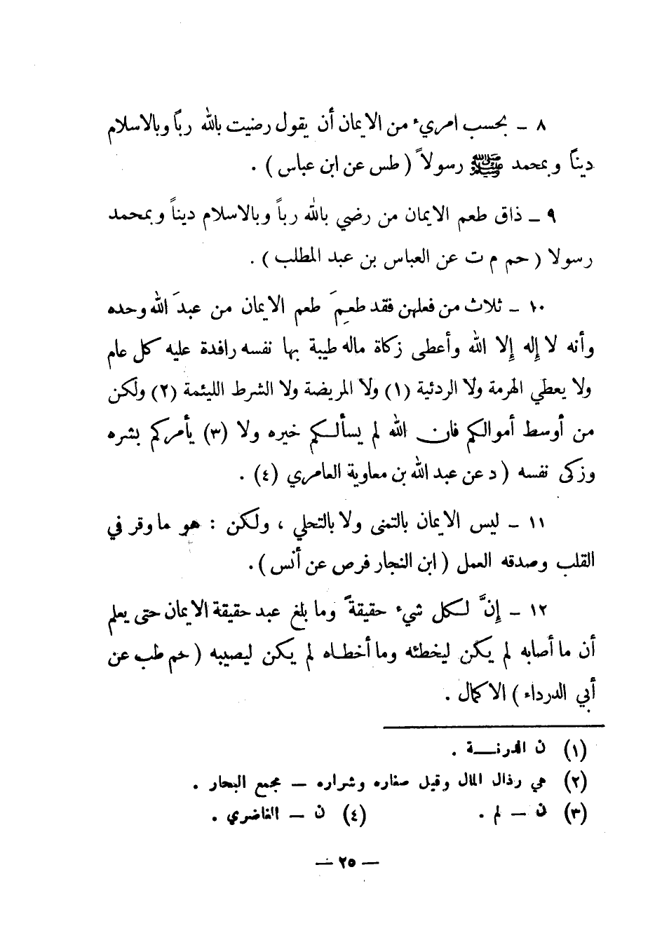 9 – "ذاق طعم الإيمان من رضي بالله ربا وبالإسلام دينا وبمحمد رسولا" (حم م ت عن العباس بن عبد المطلب) .