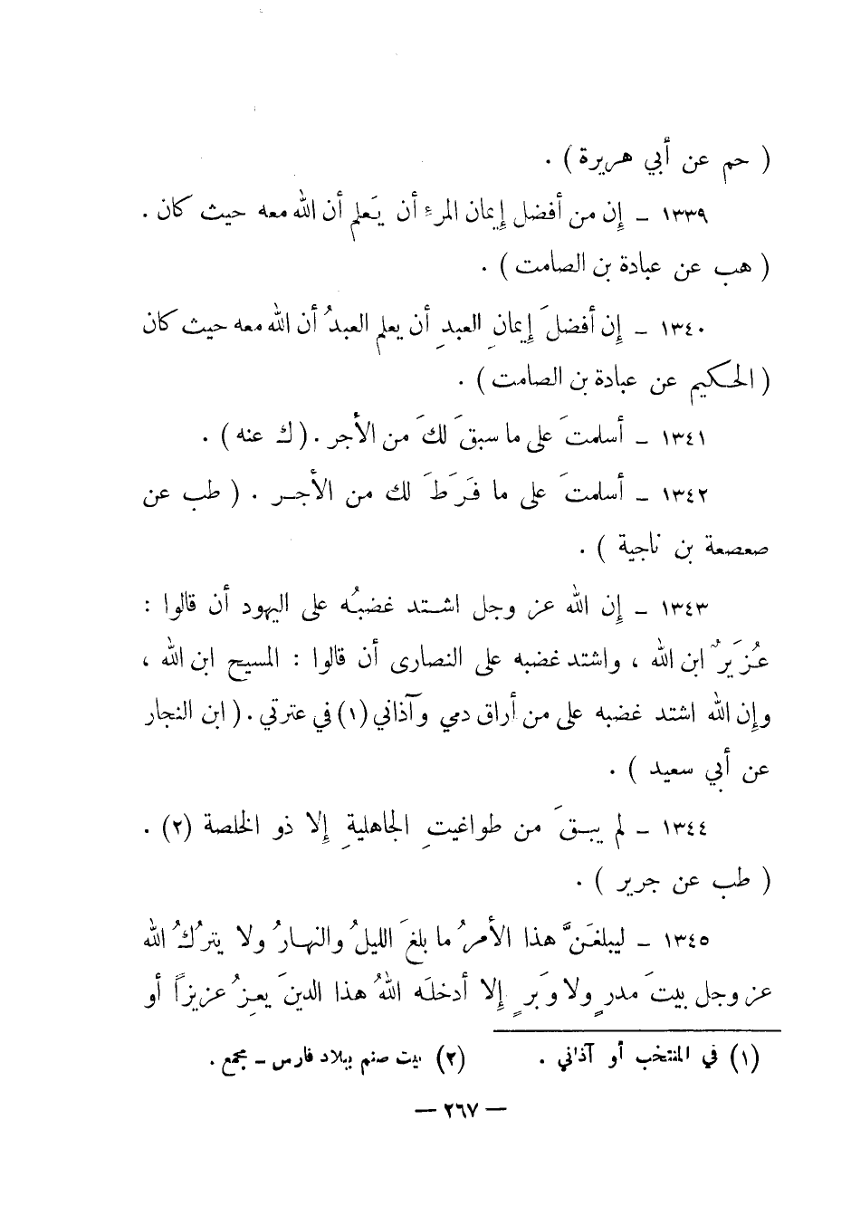 1344 – "لم يبق من طواغيت الجاهلية إلا ذو الخلصة" (2) (طب عن جرير) .