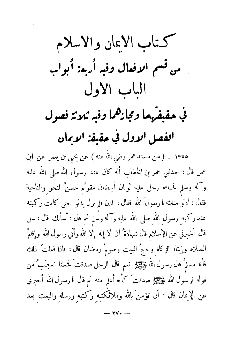 كتاب الإيمان والإسلام من قسم الأفعال: وفيه أربعة أبواب