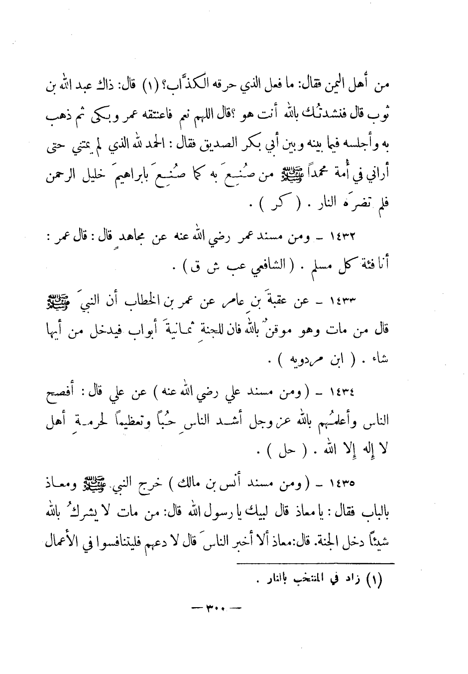 1433 - عن عقبة بن عامر عن عمر بن الخطاب أن النبي صلى الله عليه وسلم قال " من مات وهو موقن بالله فإن للجنة ثمانية أبواب فيدخل من أيها شاء". (ابن مردويه) .