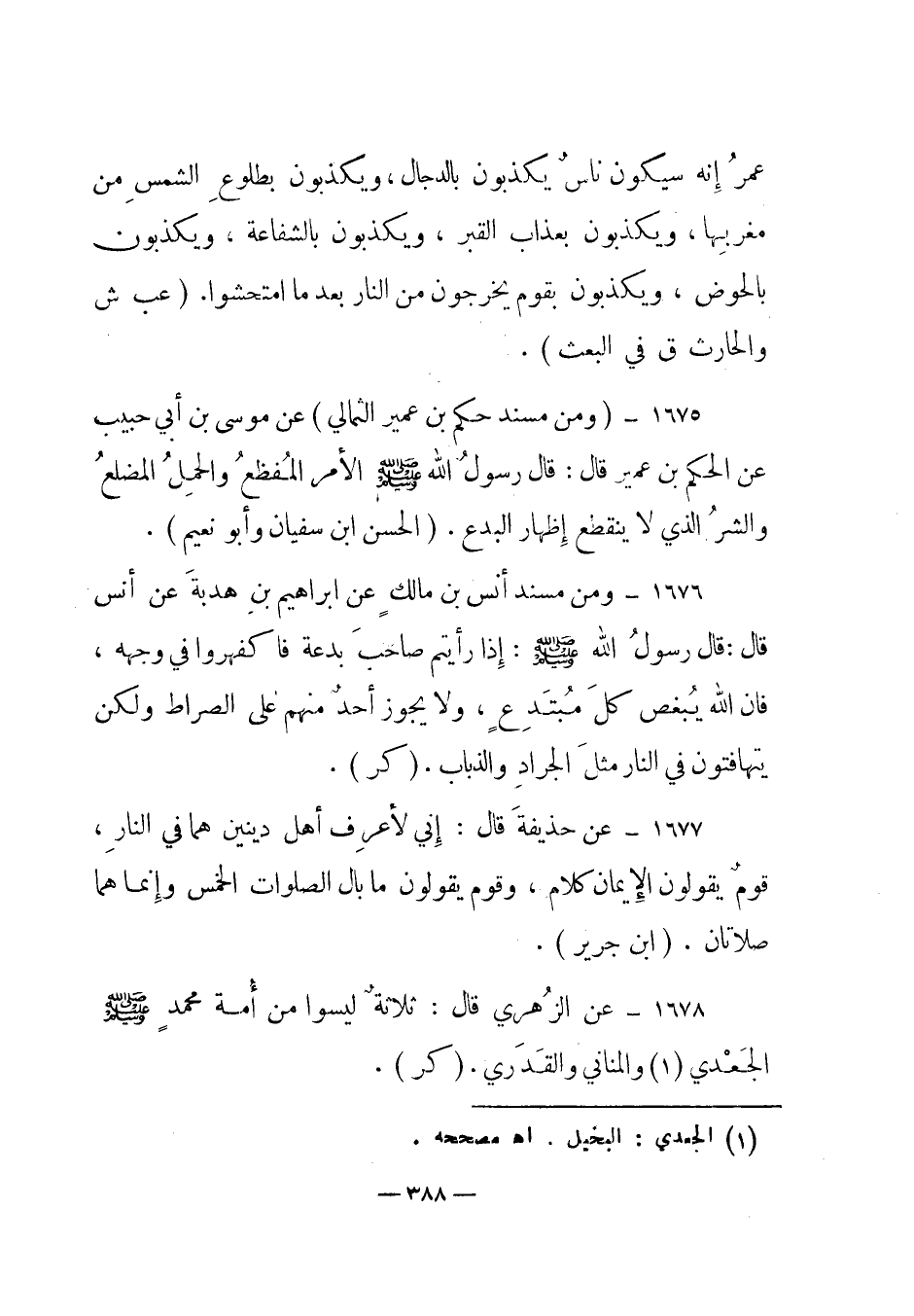 1678 - عن الزهري قال: "ثلاثة ليسوا من أمة محمد صلى الله عليه وسلم الجعدي والمناني والقدري". (كر) .