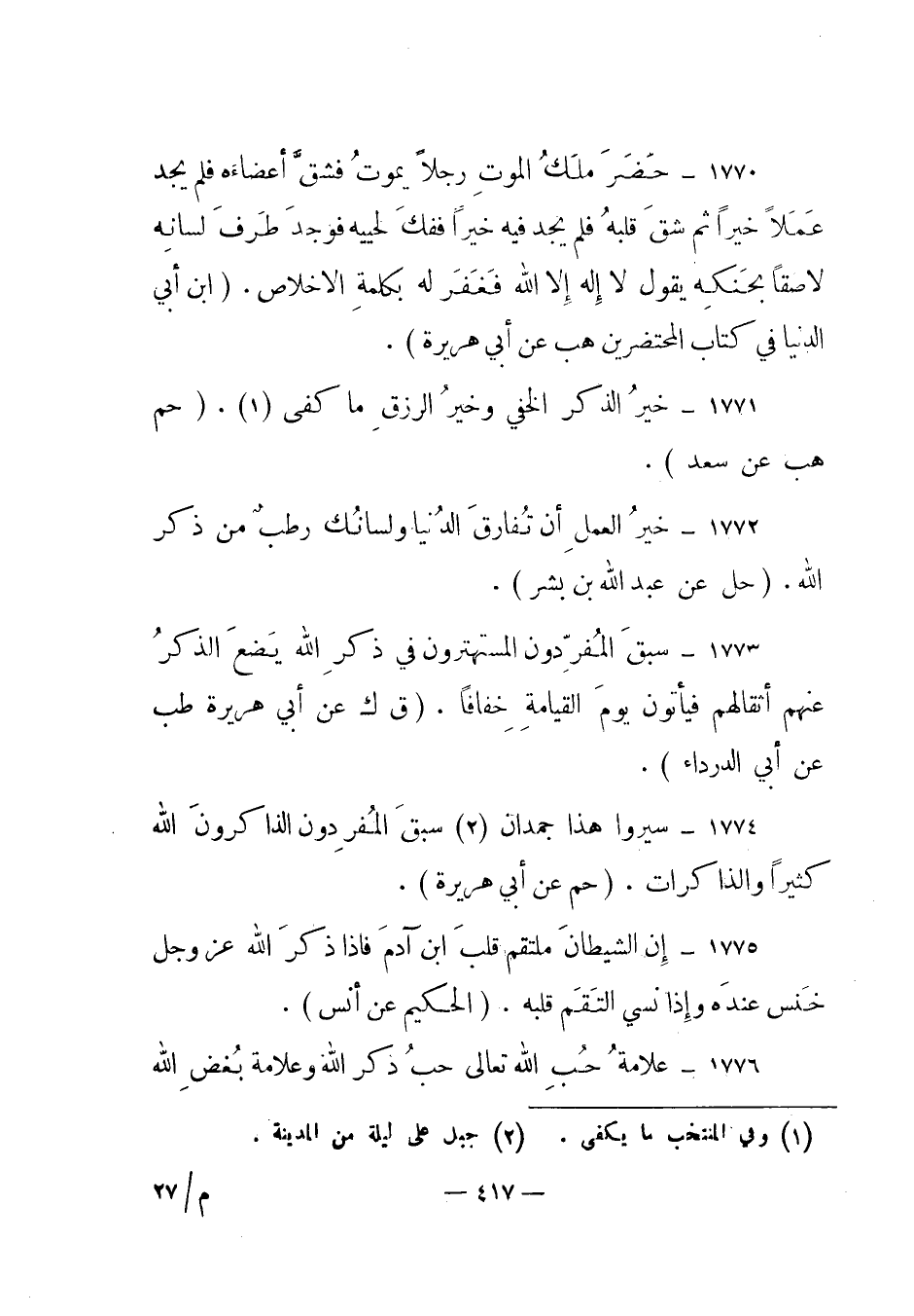1772 – "خير العمل أن تفارق الدنيا ولسانك رطب من ذكر الله". (حل عن عبد الله بن بشر) .