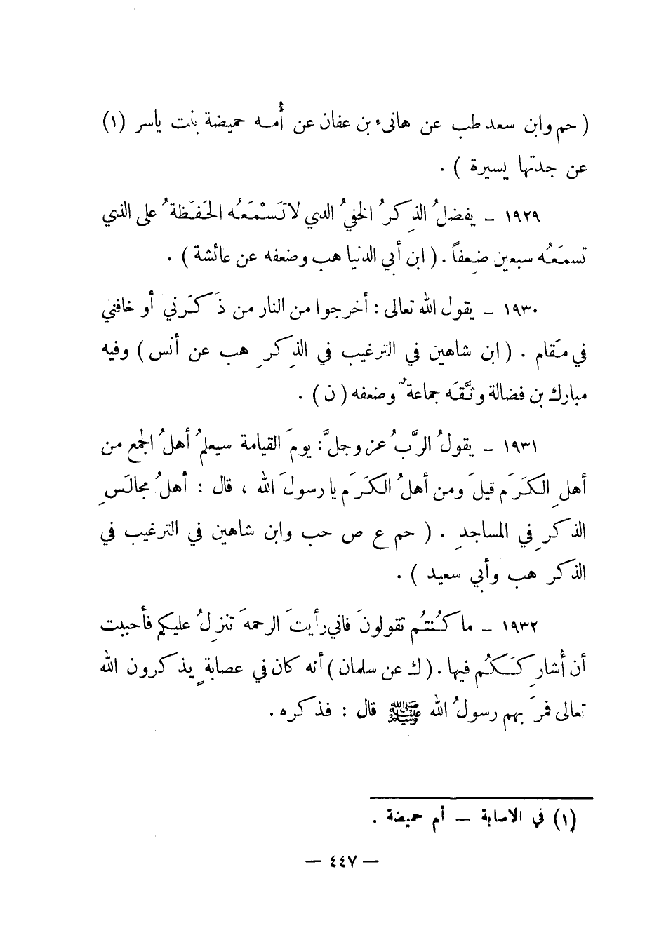 1932 – "ما كنتم تقولون فإني رأيت الرحمه تنزل عليكم فأحببت أن أشارككم فيها". (ك عن سلمان) أنه كان في عصابة يذكرون الله تعالى فمر بهم رسول الله صلى الله عليه وسلم قال: فذكره.