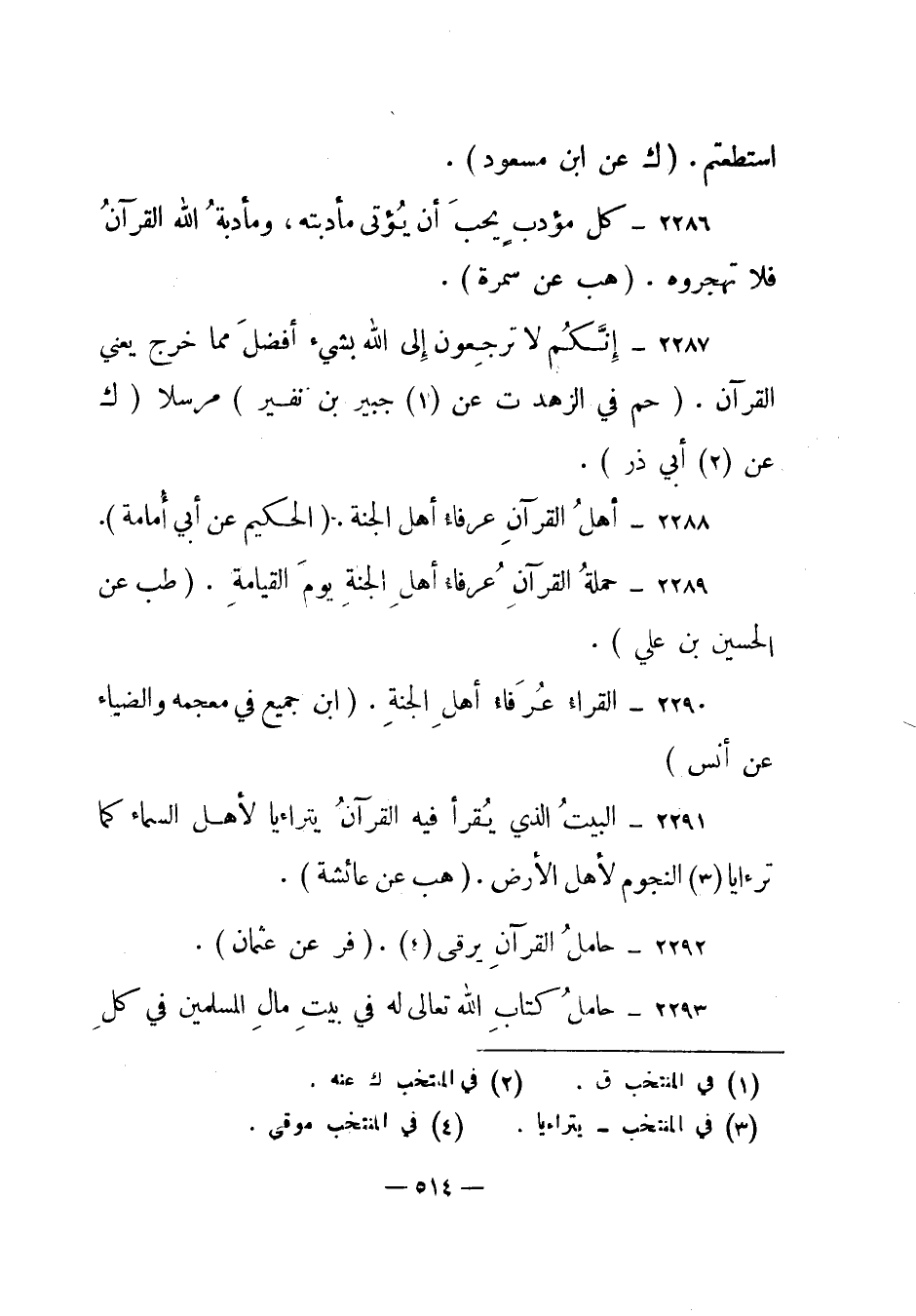 2292 – "حامل القرآن يرقى" (4) (فر عن عثمان) .
