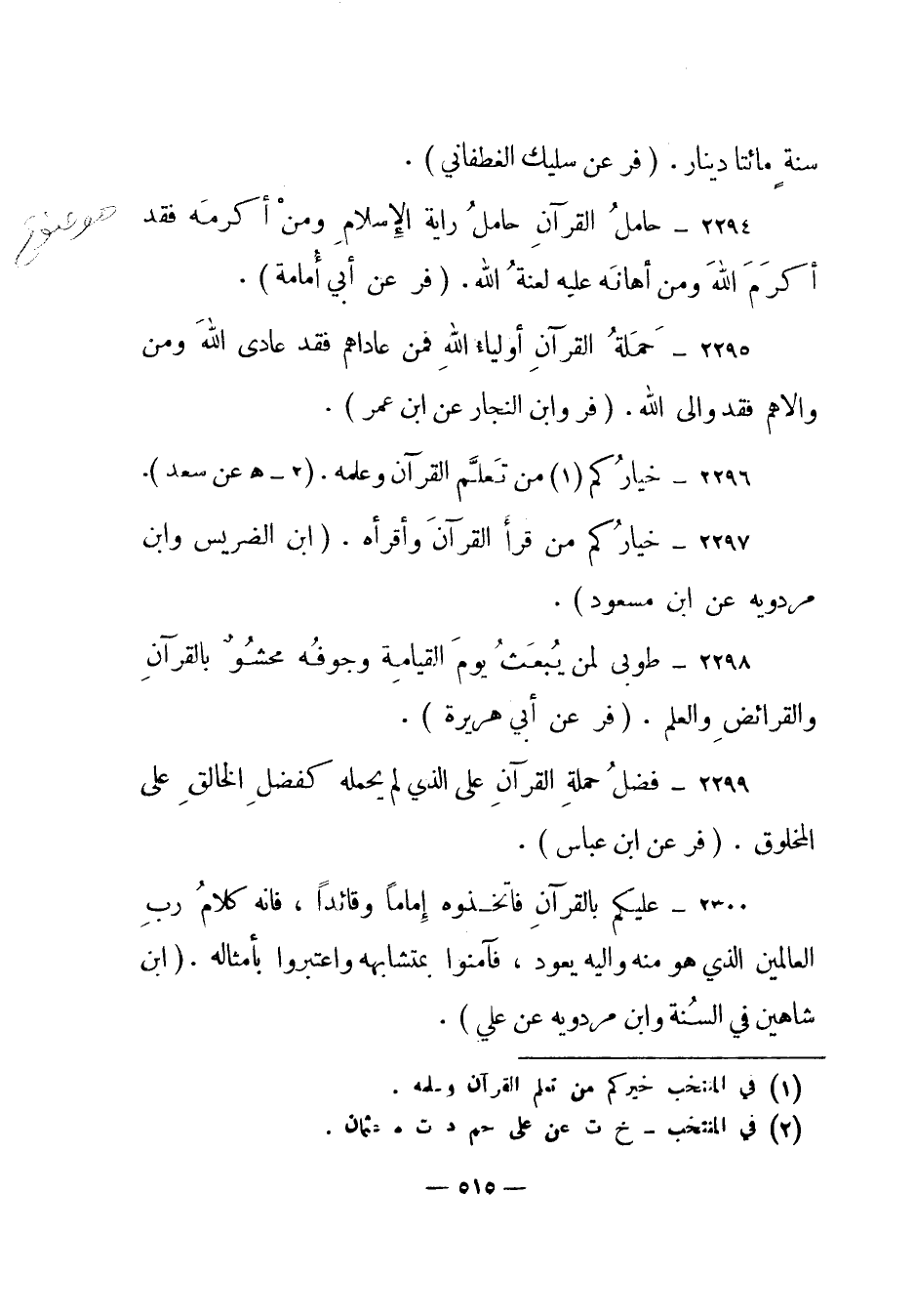 2296 – "خياركم (1) من تعلم القرآن وعلمه". (2) - هـ عن سعد) .