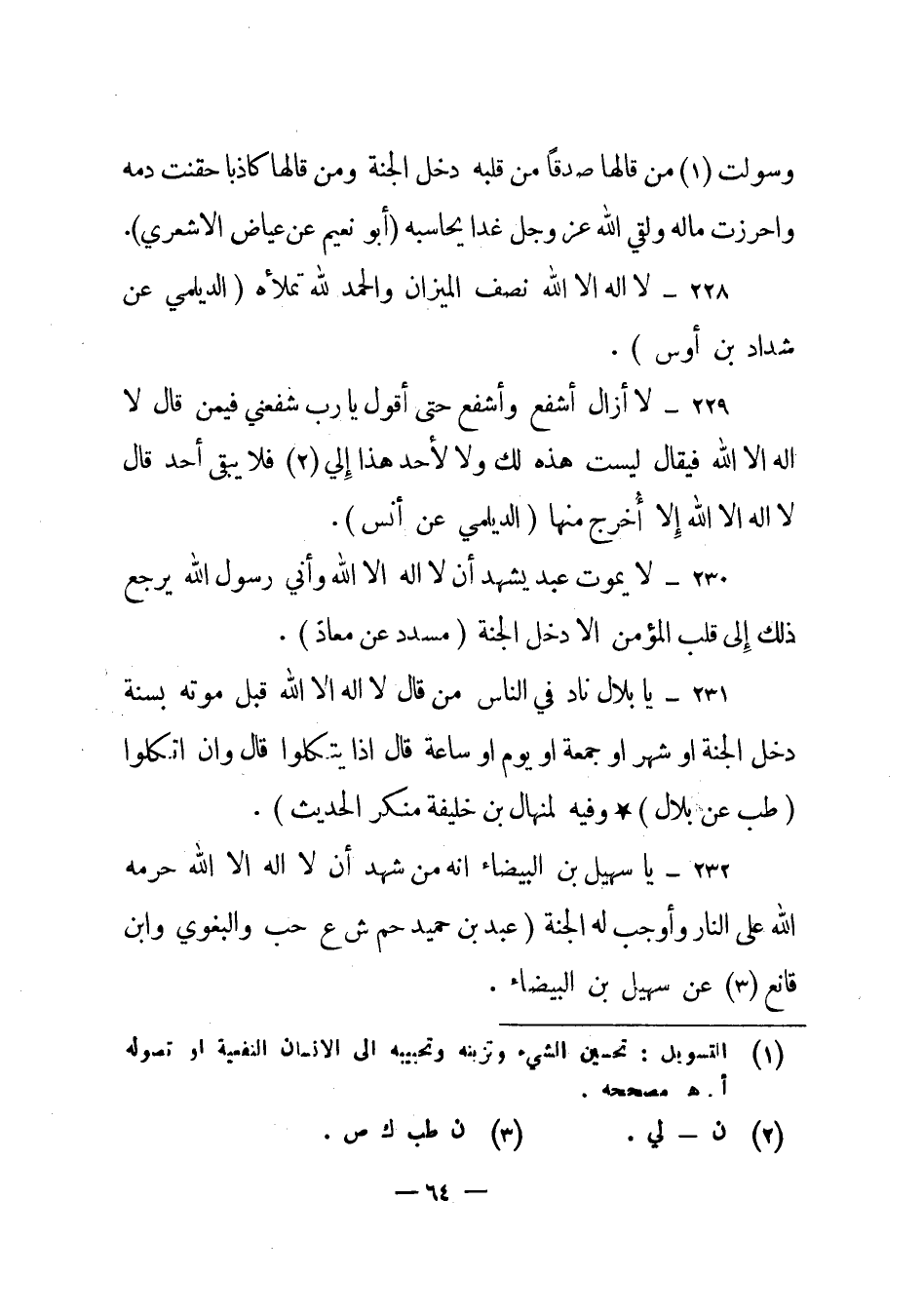 232 – "يا سهيل بن البيضاء أنه من شهد أن لا إله إلا الله حرمه الله على النار وأوجب له الجنة"