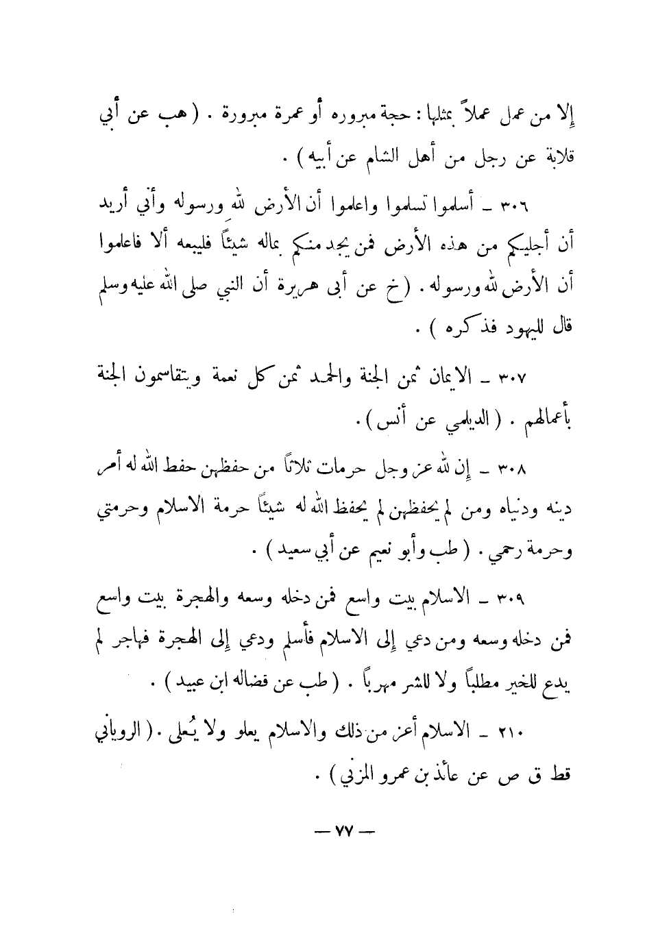 306 – "أسلموا تسلموا واعلموا أن الأرض لله ورسوله وأني أريد أن أجليكم من هذه الأرض فمن يجد منكم بماله شيئا فليبعه ألا فاعلموا أن الأرض لله ورسوله". (خ عن أبي هريرة "أن النبي صلى الله عليه وسلم قال لليهود فذكره".