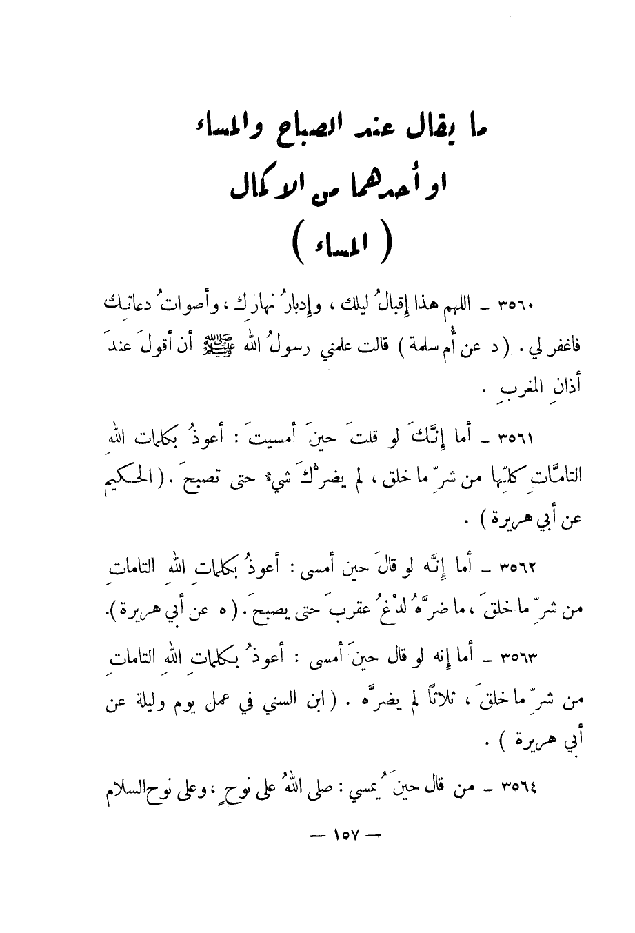 3564- "من قال حين يمسي: صلى الله على نوح، وعلى نوح السلام