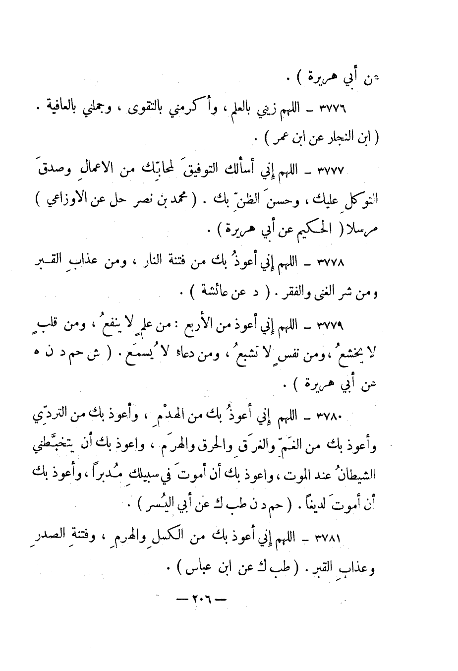 3781 – "اللهم إني أعوذ بك من الكسل والهرم، وفتنة الصدر وعذاب القبر". "طب ك عن ابن عباس".