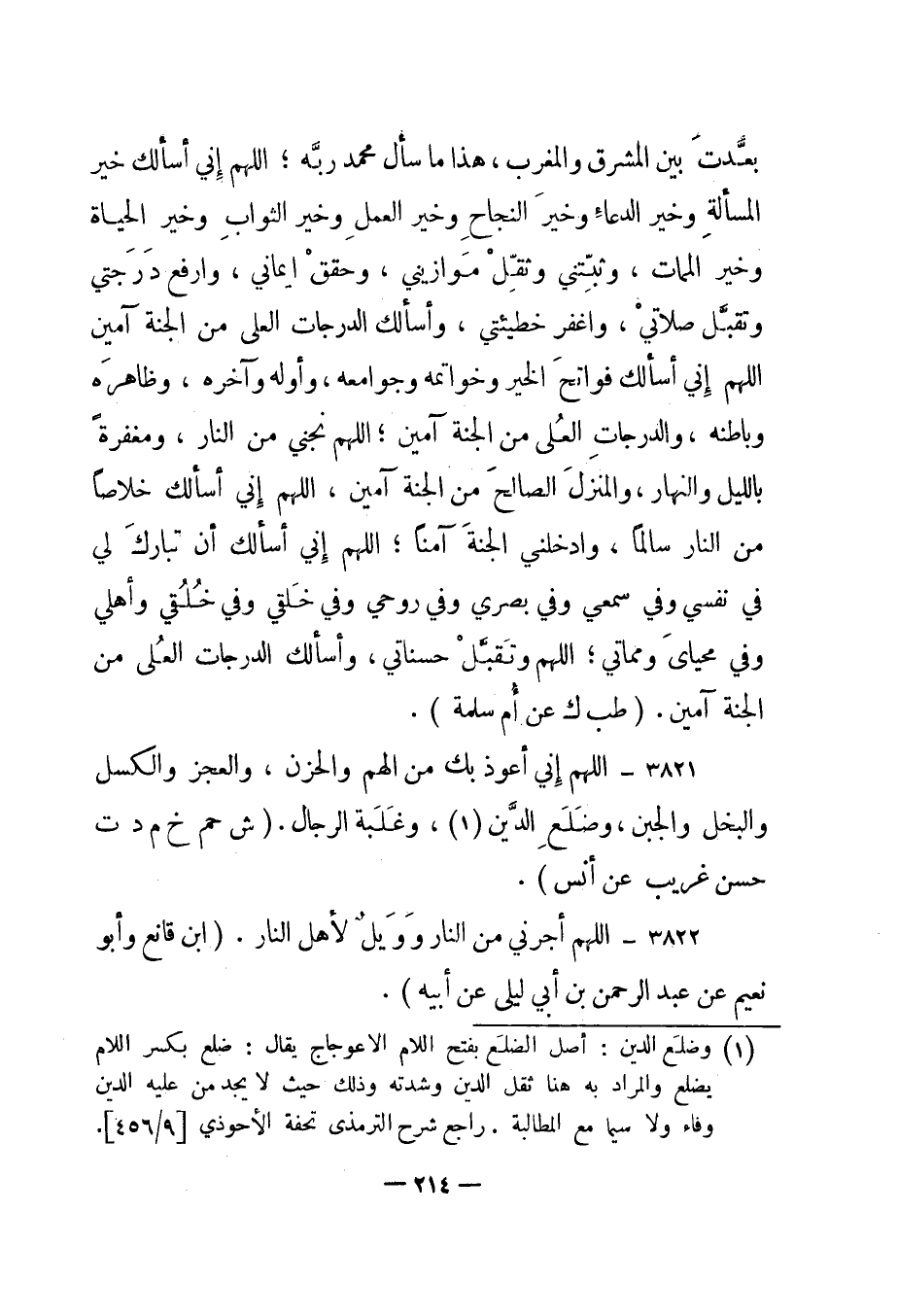 3821 – "اللهم إني أعوذ بك من الهم والحزن، والعجز والكسل والبخل والجبن، وضلع الدين1، وغلبة الرجال". "ش حم خ م د ت حسن غريب عن أنس".