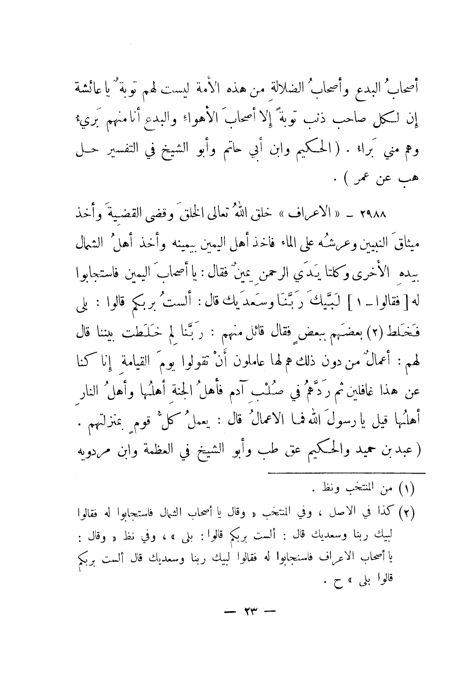 2 كذا في الاصل، وفي المنتخب "قال يا أصحاب الشمال فاستجابوا له فقالوا لبيك ربنا وسعديك قال: ألست بربكم قالوا: بلى" وفي نظ "وقال: يا أصحاب الأعراف فاستجابوا له فقالوا لبيك ربنا وسعديك قال ألست بربكم قالوا بلى" ح